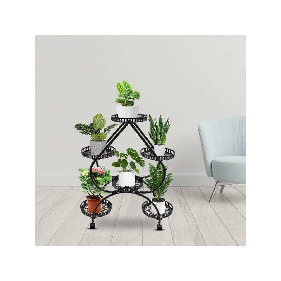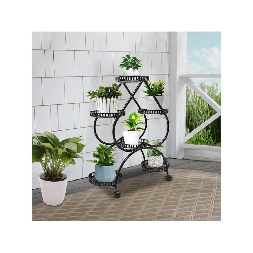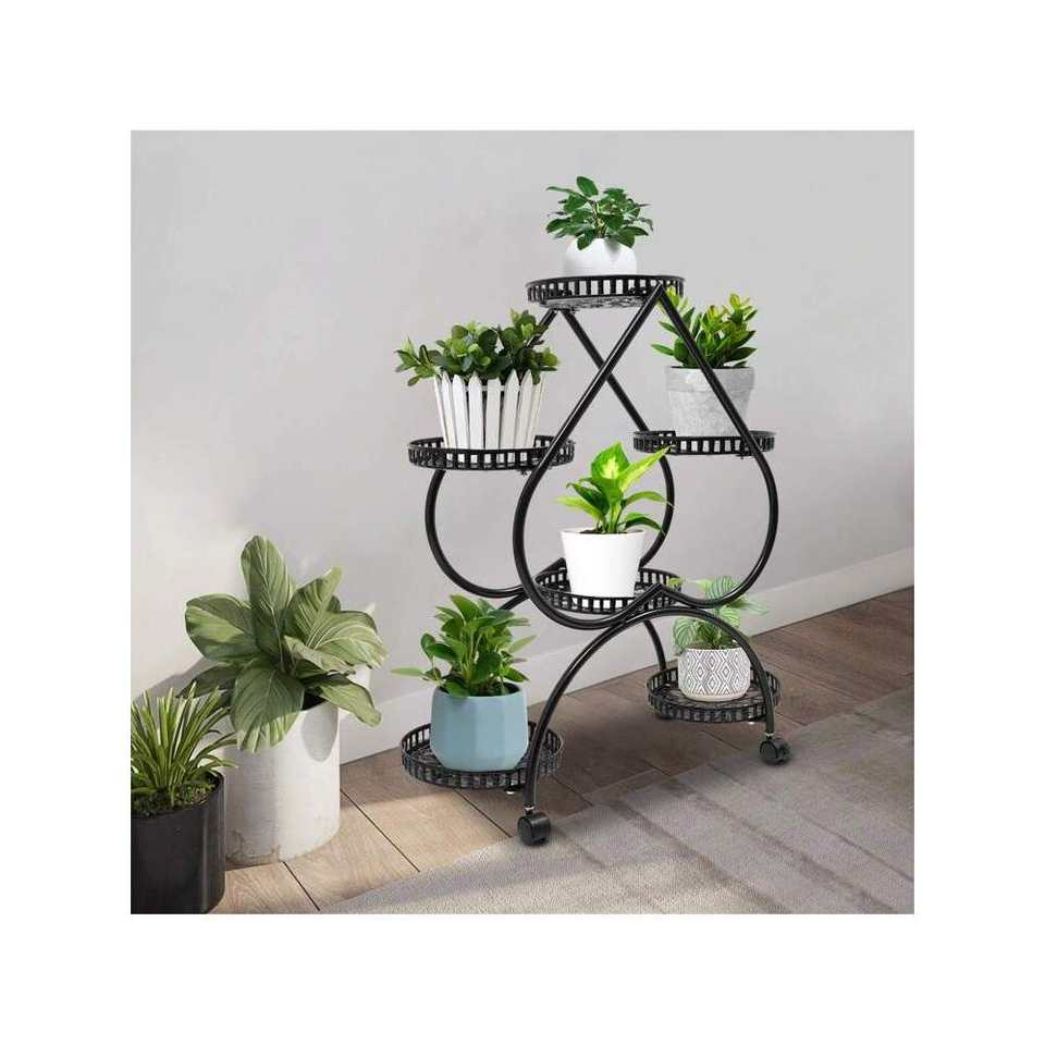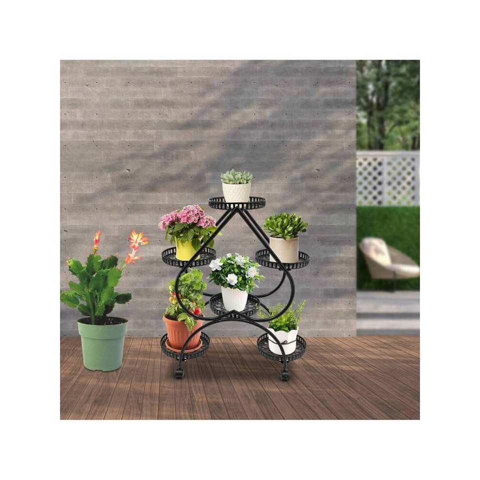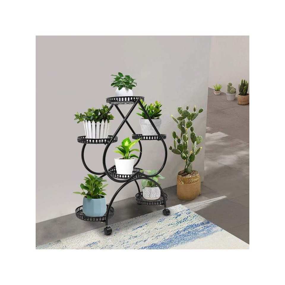 Soporte de maceta de hierro para interiores de 4 niveles en forma de corazón con 6 macetas, estante alto de metal negro con diseño interior escalonado