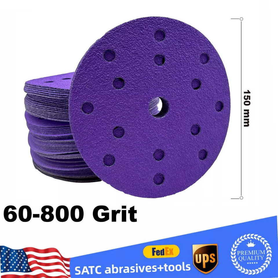 Disco de lija de grano de cerámica Premium de 6 \ ", grano 60-800, 15 agujeros, gancho de bucle, 150mm, redondo, personalizable, soporte OEM