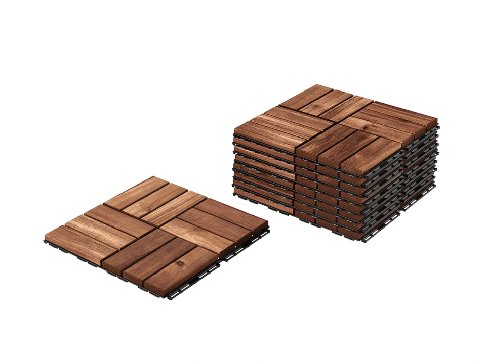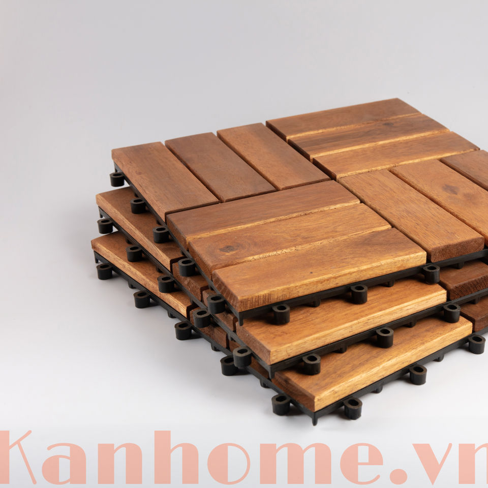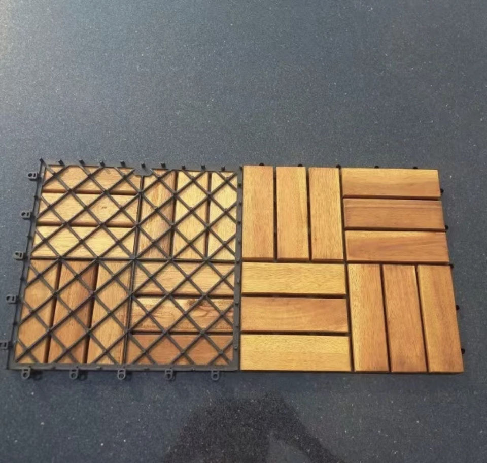Baldosa de Madera de Acacia de Alta Calidad con 6 Listones, Diseño Moderno de 300X300X19MM, Decoración Exterior Lisa, Precio Bajo para Exportación, MOQ Bajo