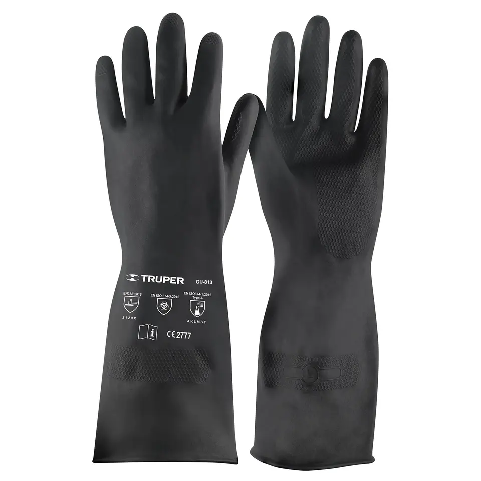 6 guantes de neopreno Unitriga Box G Truper's, materiales modernos y reciclados para manipulación química y embalaje de regalos