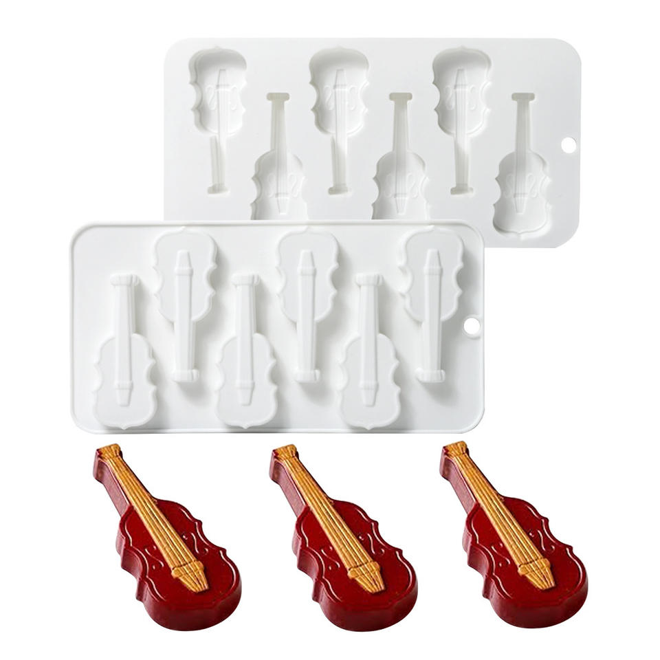 6 violín instrumentos musicales moldes de silicona para hornear pasteles francés Mousse pastel moldes DIY guitarras moldes para galletas de Chocolate