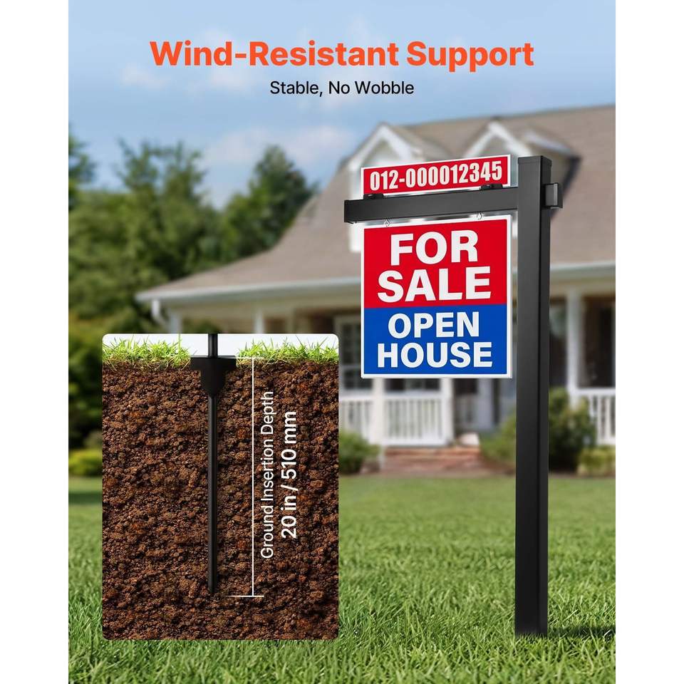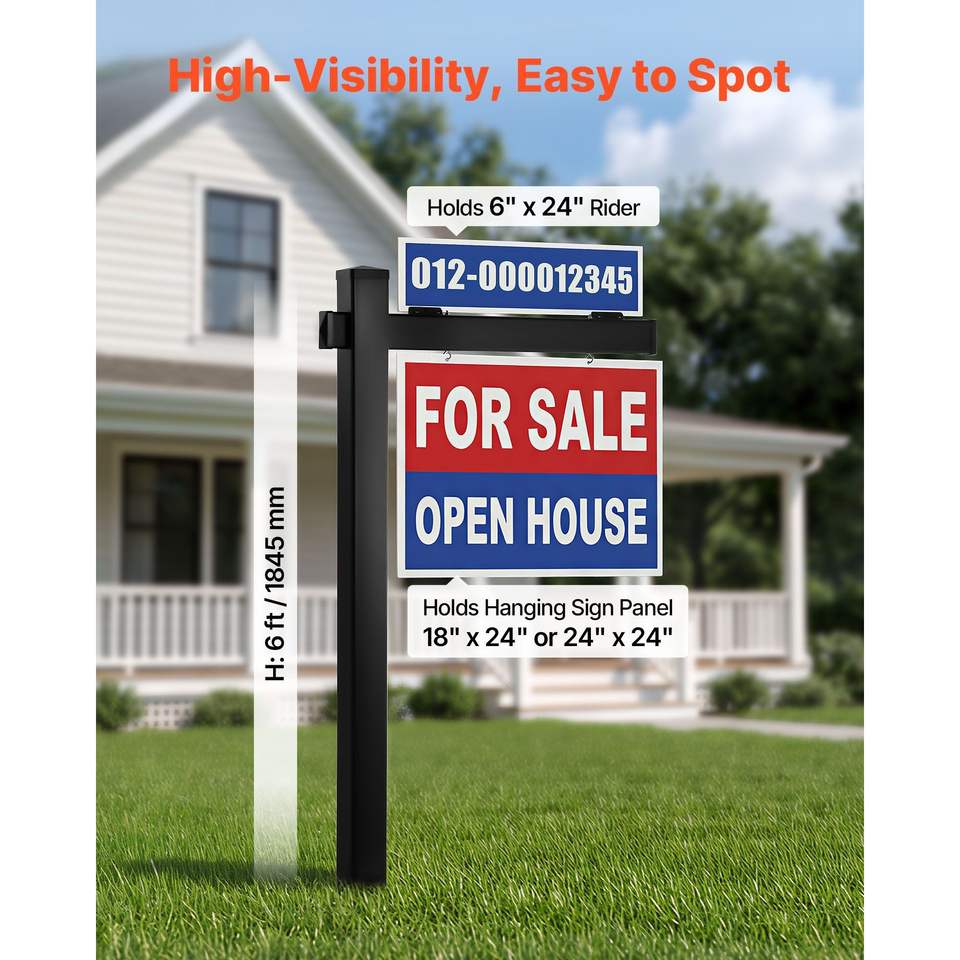 Poste para letreros inmobiliarios de PVC de 6 pies de altura, resistente al viento, con soporte para letreros de agente inmobiliario y brazo de 36 pulgadas, fácil de instalar, 24 tamaños