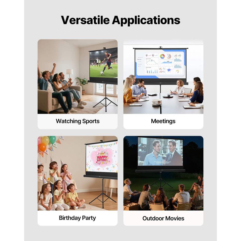 Pantalla de Proyección Portátil de 60 Pulgadas, 160 Grados de Ángulo Amplio, Sin Arrugas, con Soporte, 4K HD 16:9, para Proyección en Interiores y Exteriores