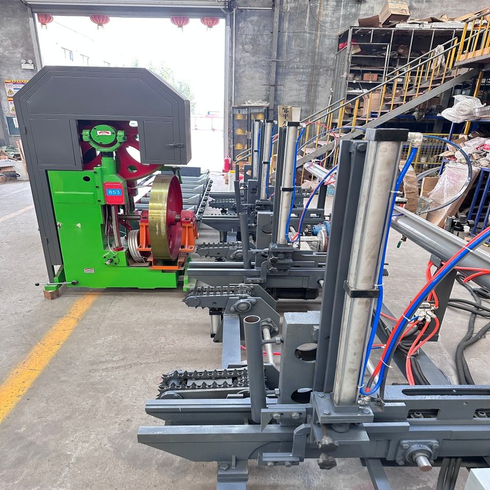 Sierra de cinta para madera, máquina aserradora semiautomática hidráulica neumática con carro para troncos
