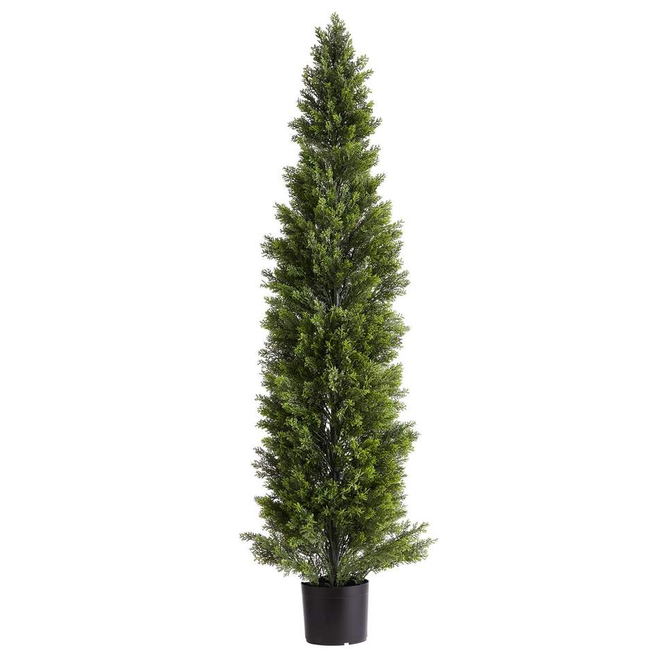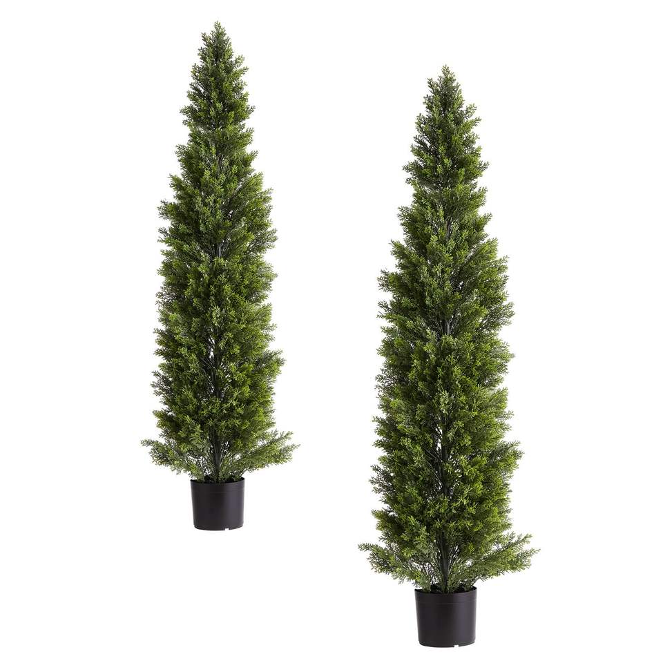 Árboles de Cedro Artificiales de 60 Pulgadas de Fácil Montaje, 2 Conjuntos de Arbustos de Pino Artificiales, Plantas Decorativas de Seda Sintética con Aspecto Realista para la Entrada