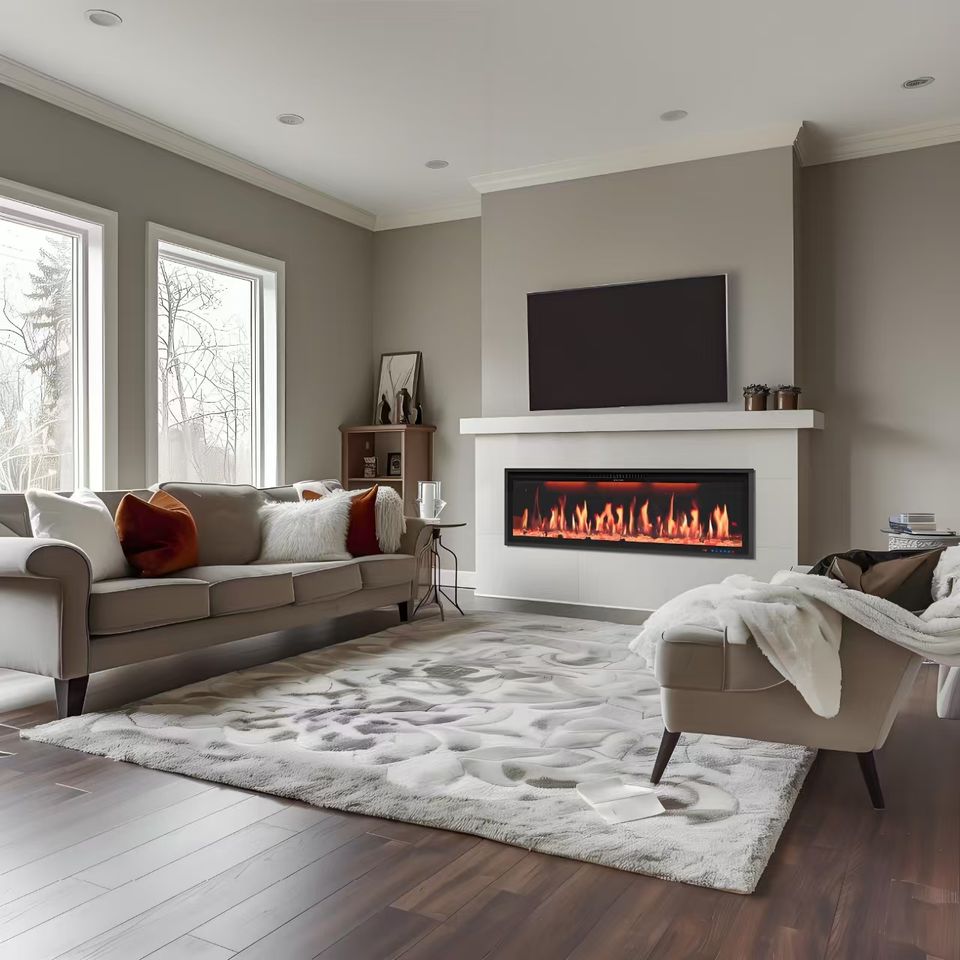 Chimenea eléctrica inteligente de 60 pulgadas, aplicación de control, 13 colores de llama, Google Home, Alexa, Metal compatible con sala de estar, hoteles en inglés
