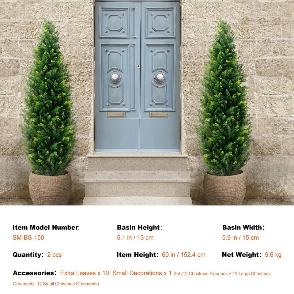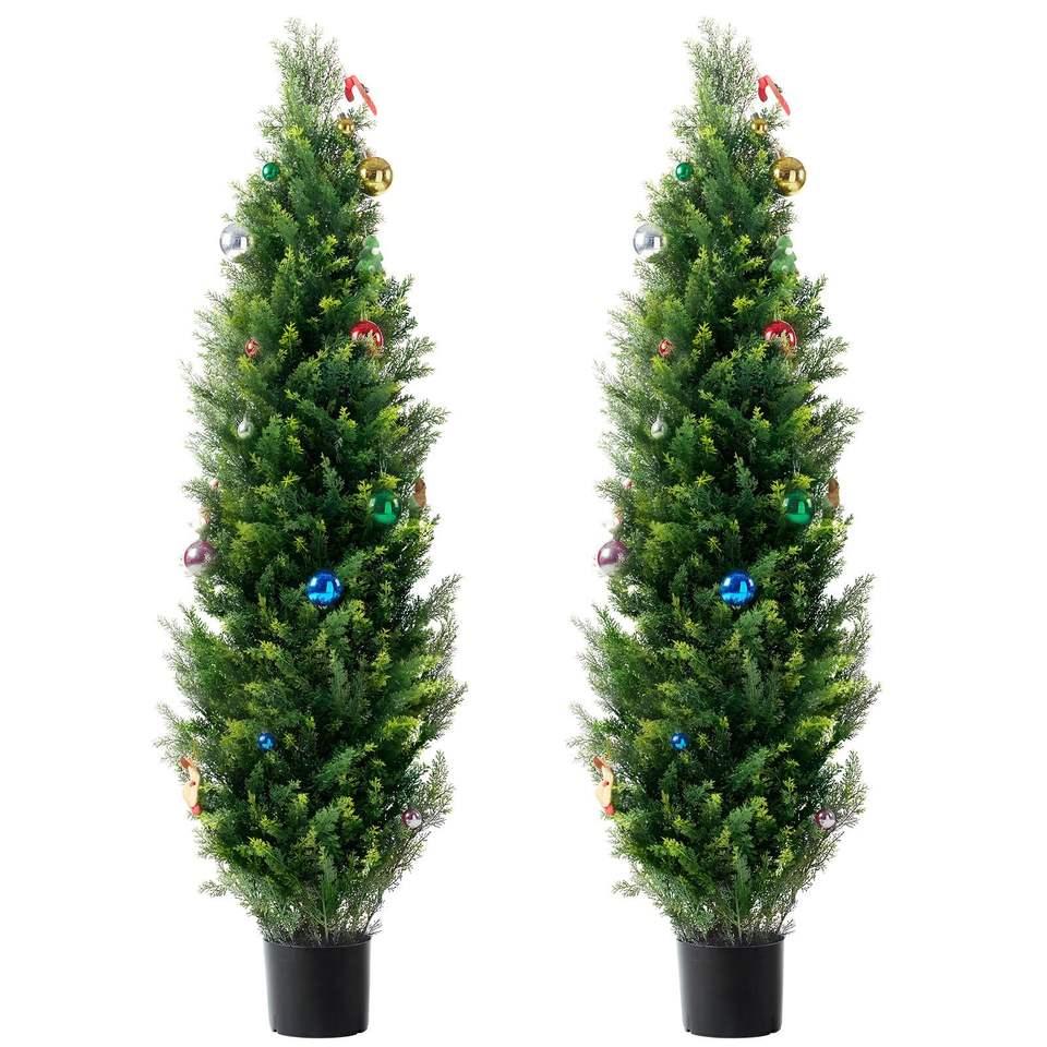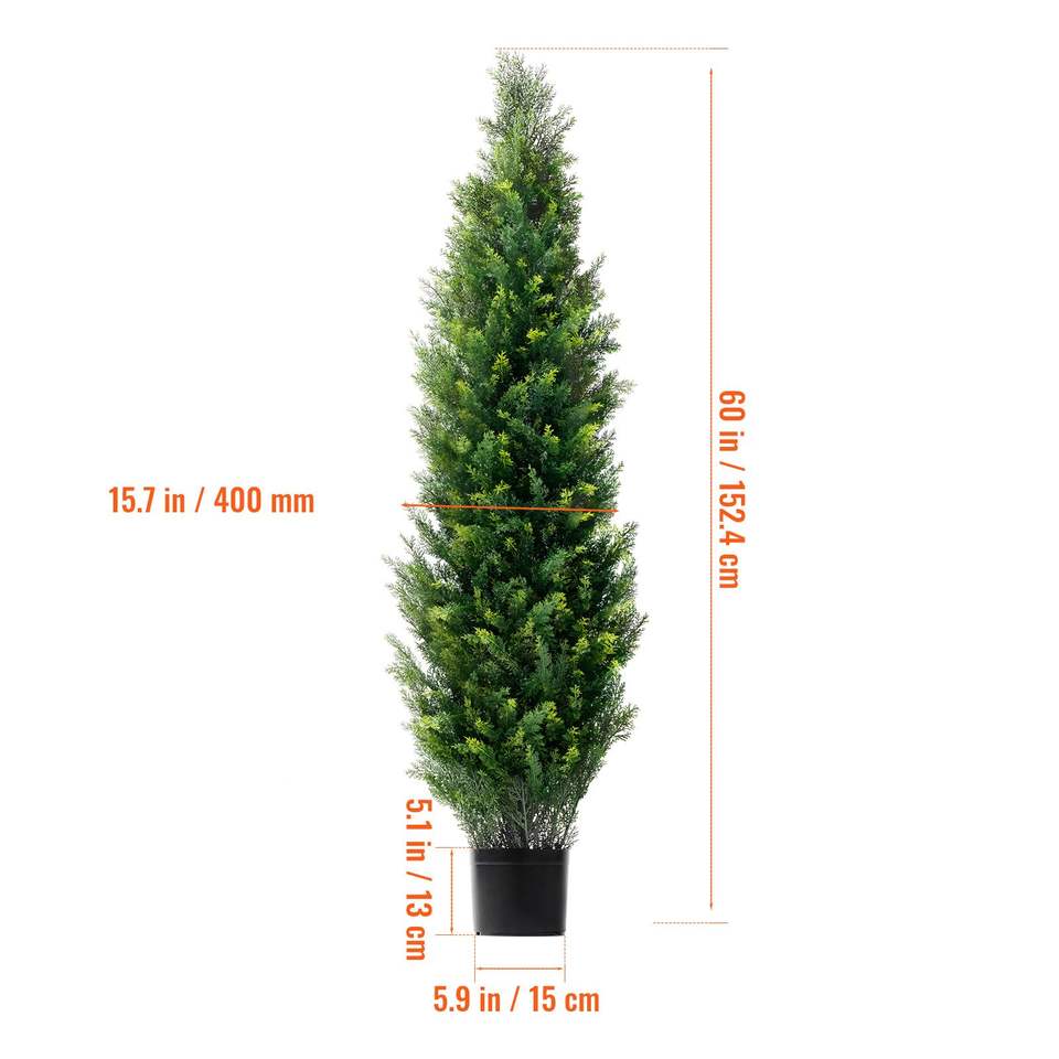 Árbol Topiario Artificial de Cedro de 60 Pulgadas de Alto con Hojas Adicionales en Maceta, Set de 2 Árboles Falsos de Pino y Ciprés de Hoja Perenne