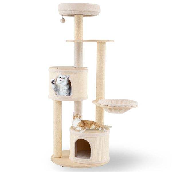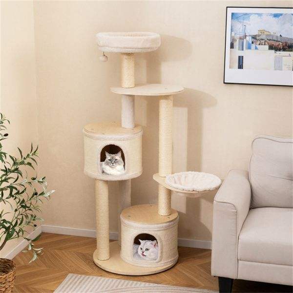 Árbol para Gatos de Madera de 60 Pulgadas de Alto con Múltiples Niveles, Condominios y Postes Rascadores de Sisal para Gatos de Interior, Aspecto Natural