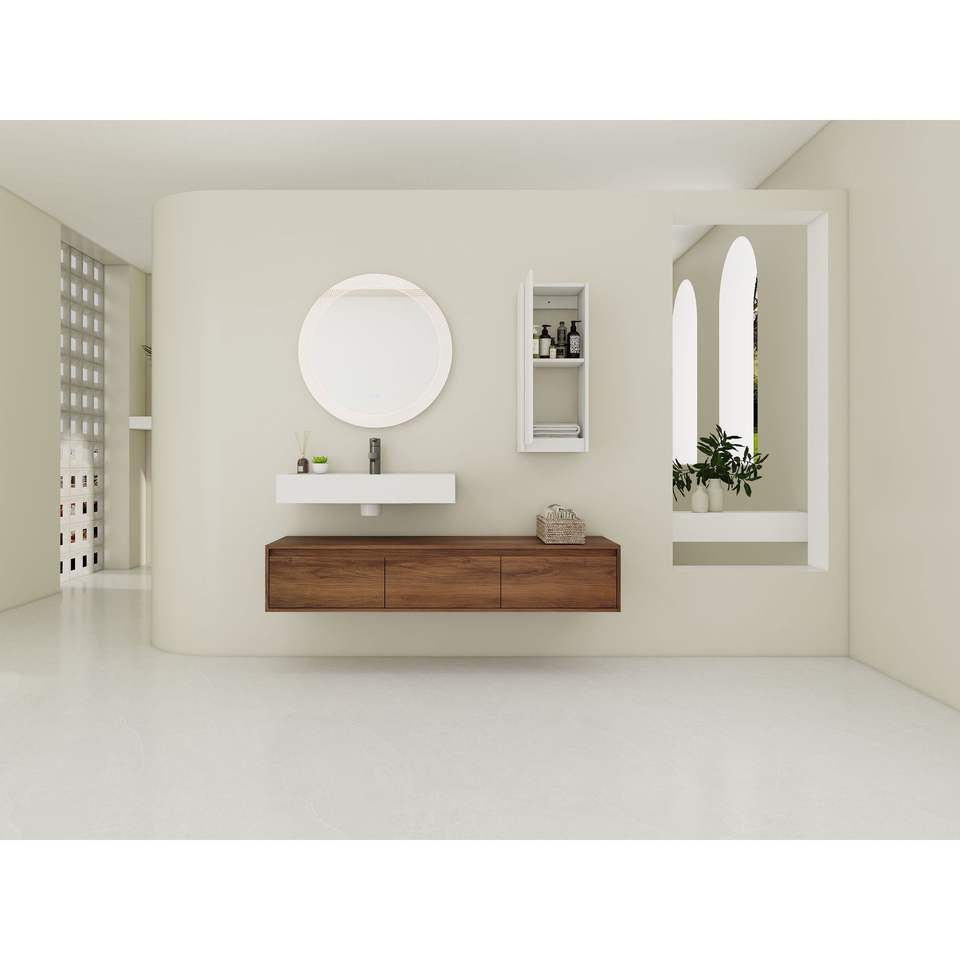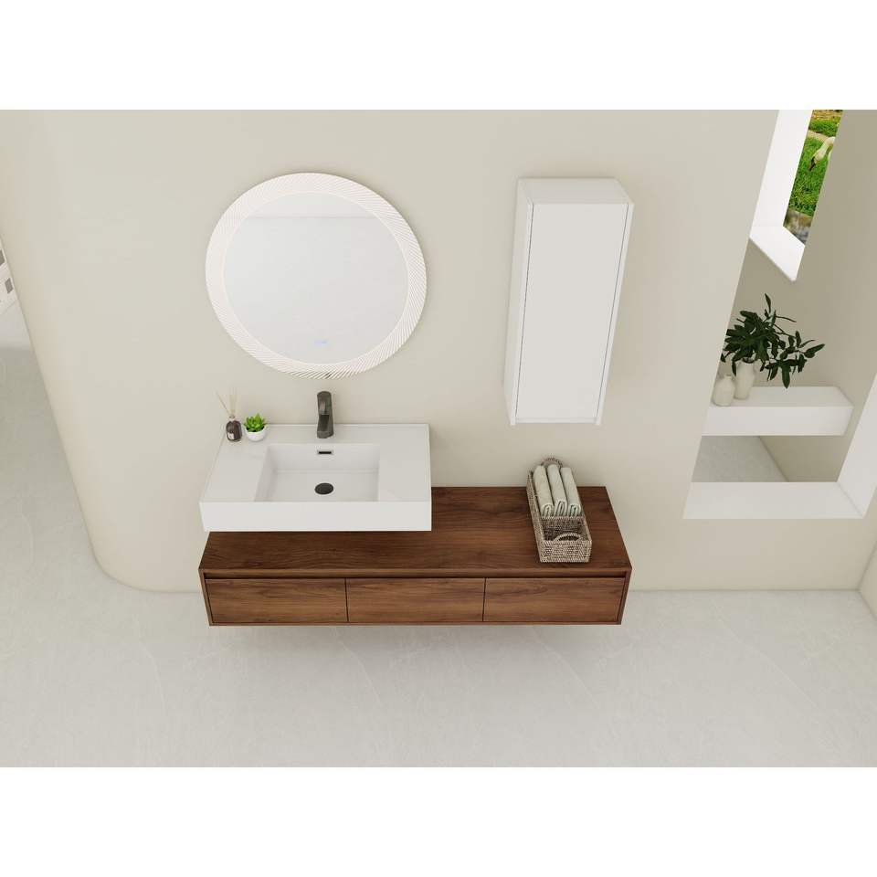 Mueble de Baño de Pared de 60 Pulgadas con Lavabo de Resina y Gabinete Lateral, 3 Cajones con Cierre Suave, Diseño de Montaje Flotante