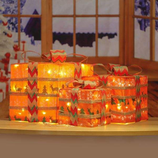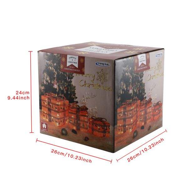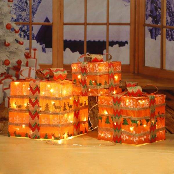 Juego de 3 Lazos de Lino con 60 Luces LED, Enchufes Estándar Americanos, Caja de Regalo para Jardín, Iluminación Decorativa para Exteriores