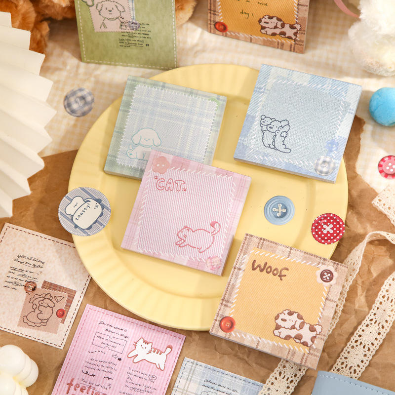 Bloc de Notas Adhesivas de 60 Hojas por Paquete, Serie Tela Cálida, Paquete Doble, Ilustraciones Lindas en Tono Salado, Planificador para Estudiantes