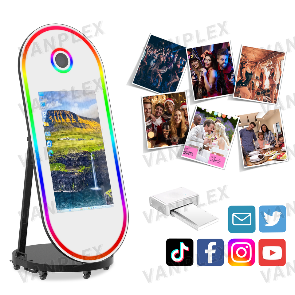 Cabina de Fotos con Espejo Mágico para Selfies de 60'', Pantalla Táctil de 32'', PC I5/i7, Blanco/Negro, Stock en EE. UU., Listo para Enviar