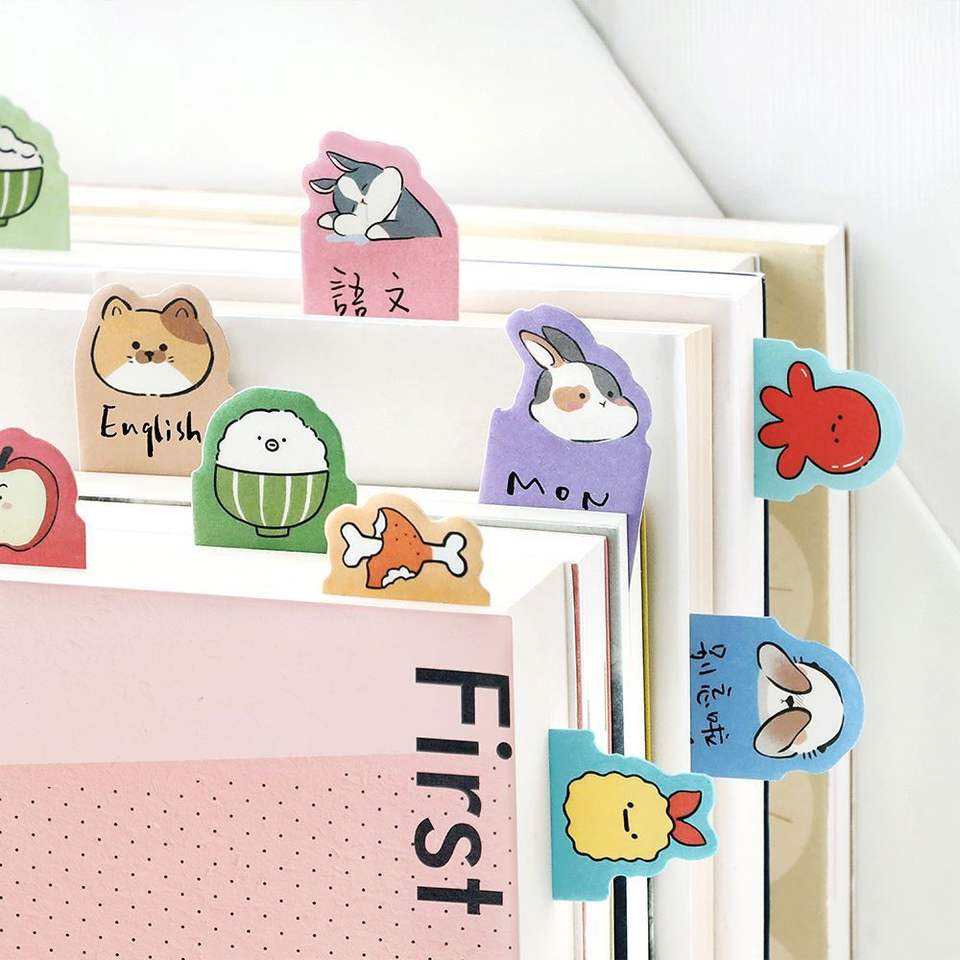 Bloc de Notas Adhesivas con Índice, 60 Hojas/paquete, Diseños Divertidos de Mascotas, para Computadora, Refrigerador, Notas de Escritura