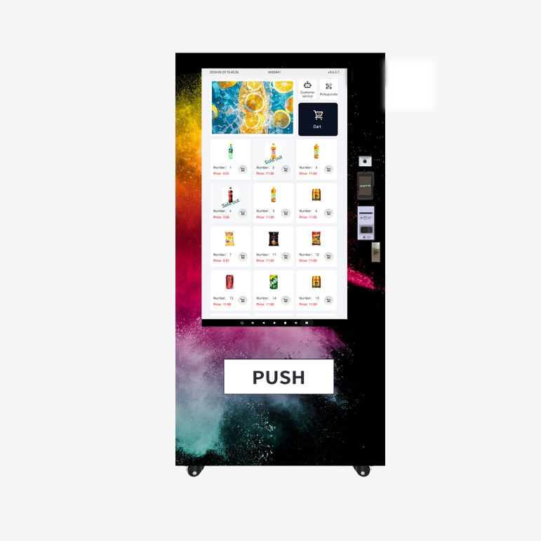 Máquina Expendedora de Gran Capacidad con 60 Ranuras, Pantalla Táctil de 55 Pulgadas, Máquina Expendedora Refrigerada para Bebidas y Aperitivos