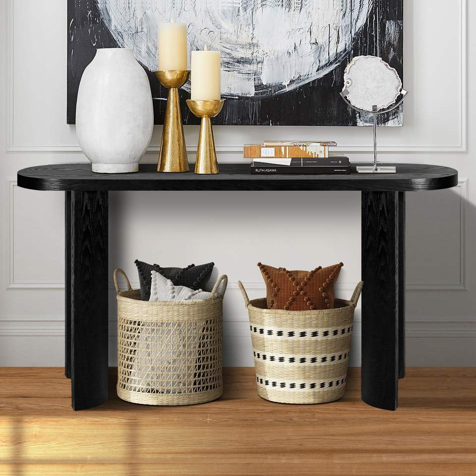 Mesa Consola de Entrada de 60 Pulgadas de Grosor con Patas Curvas, Soporta Sofás Orientados Hacia Adentro y Hacia Afuera, Color Negro