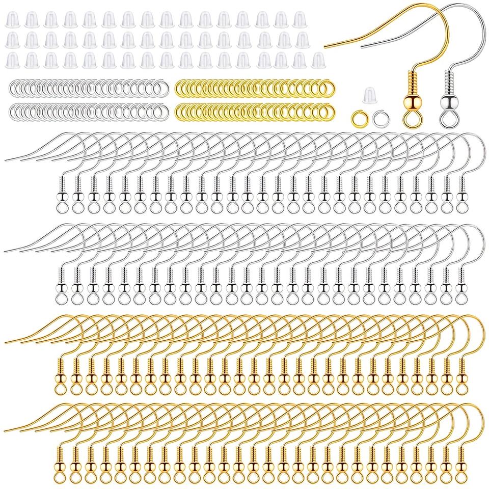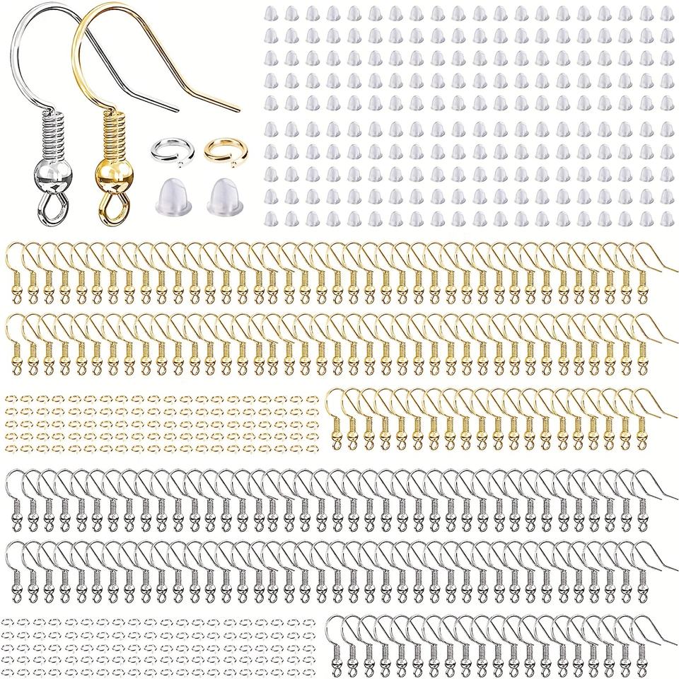 Kit de 600 Piezas para Hacer Joyería con Ganchos para Aretes Color Plata y Oro, Incluye Anillas y Topes para la Fabricación de Aretes
