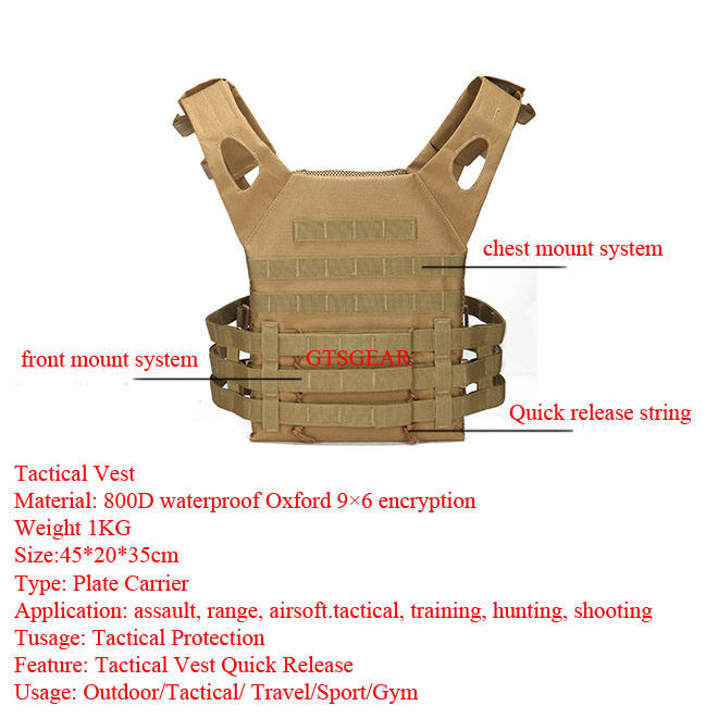 Chaleco Portaplacas Táctico de Liberación Rápida, Sistema Molle 600D, Tela Oxford Ajustable, Fácil de Desmontar para Caza al Aire Libre