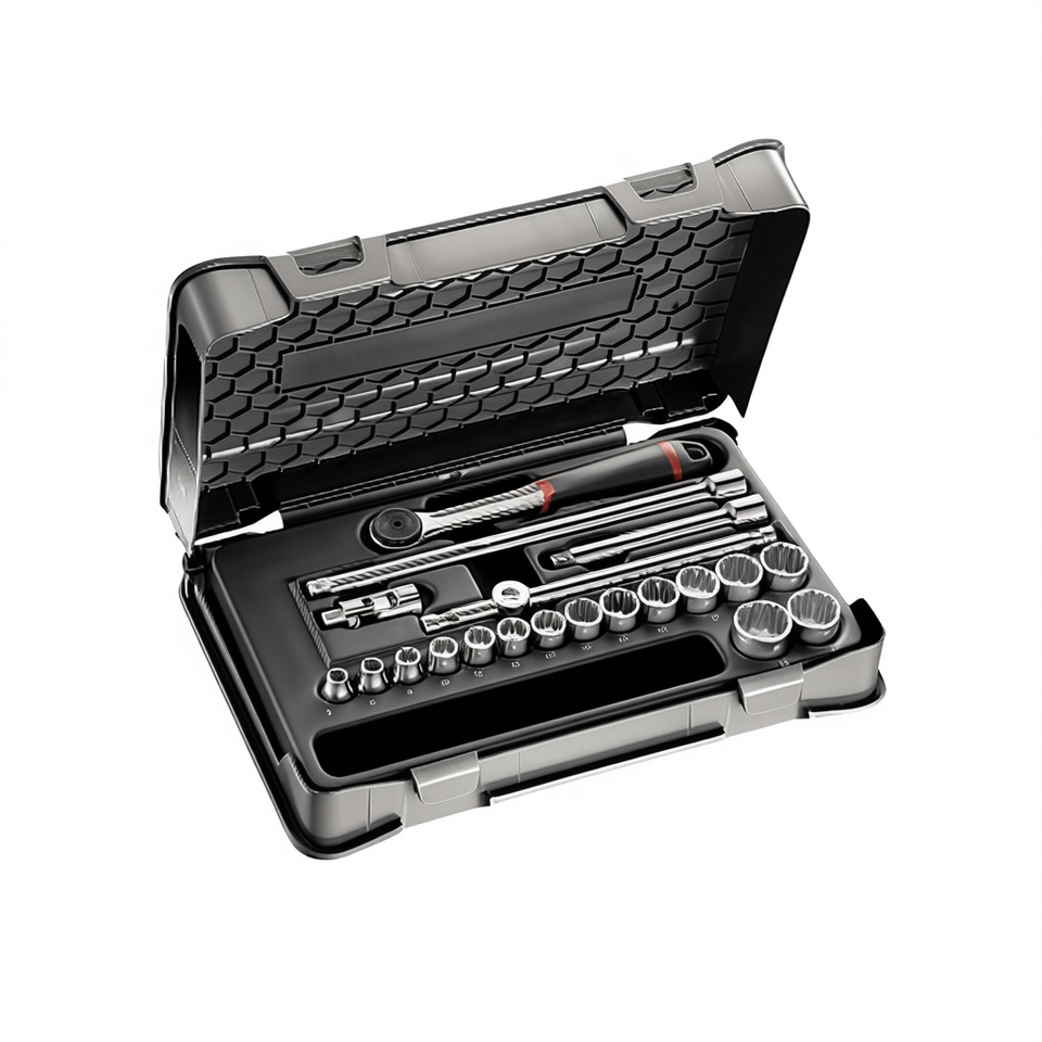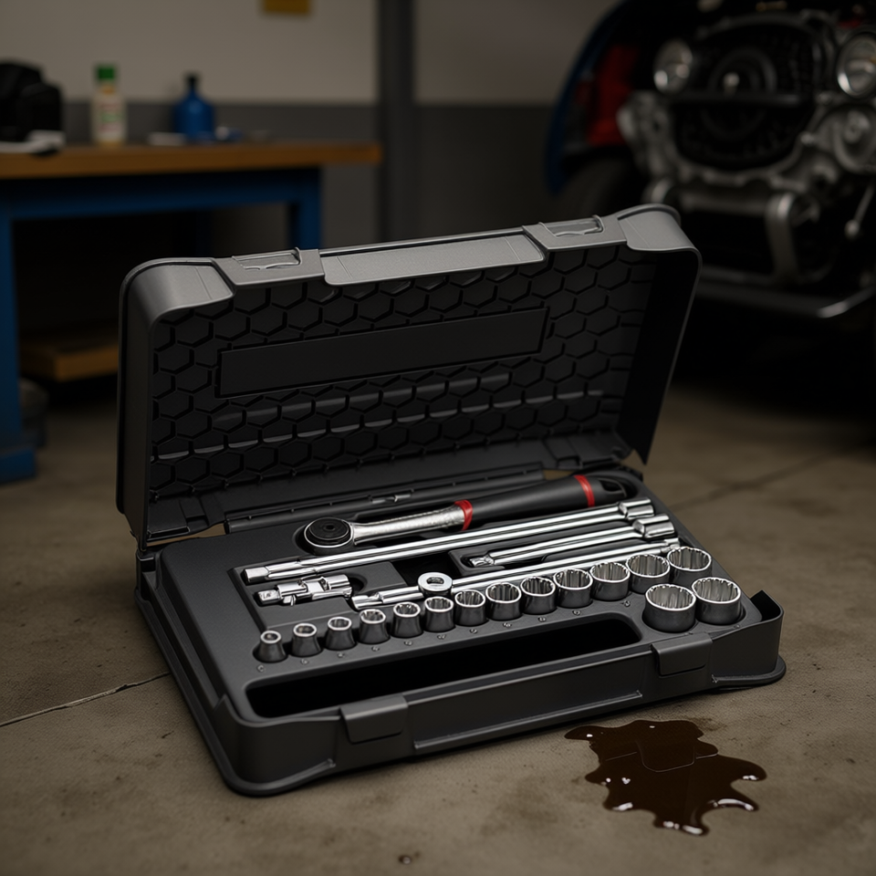 Juego de llaves de vaso de 605 3/8 pulgadas con trinquete y extensiones para reparación automotriz