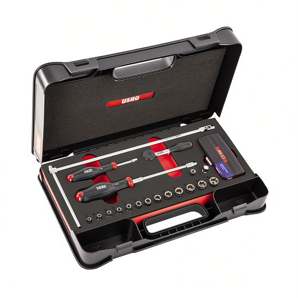 Juego de llaves de vaso de 608 1/4 pulgadas con trinquete y extensiones para reparación automotriz