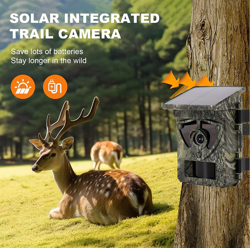 Cámara de Caza Digital con Carga Solar Wifi de 60MP, Tiempo de Disparo de 0.2s, Resistente al Agua IP67, Cámara de Rastreo Wifi