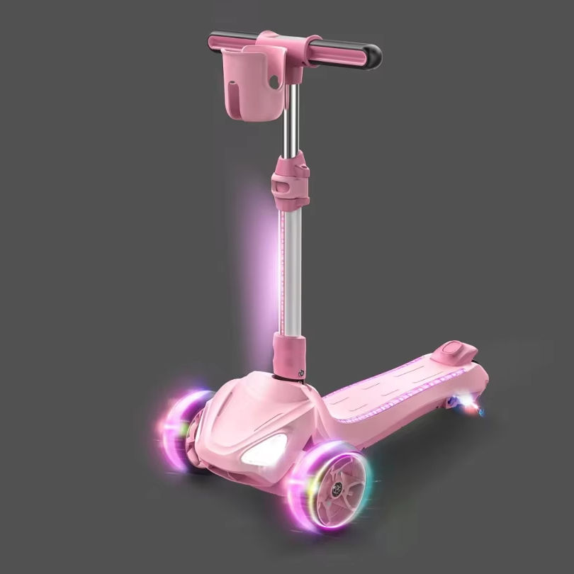 Patinete Eléctrico de 3 Ruedas y 60W para Niños, Plegable, con Luces LED, Go Kart, Patineta Electrónica Inteligente Moderna, Diversión al Aire Libre