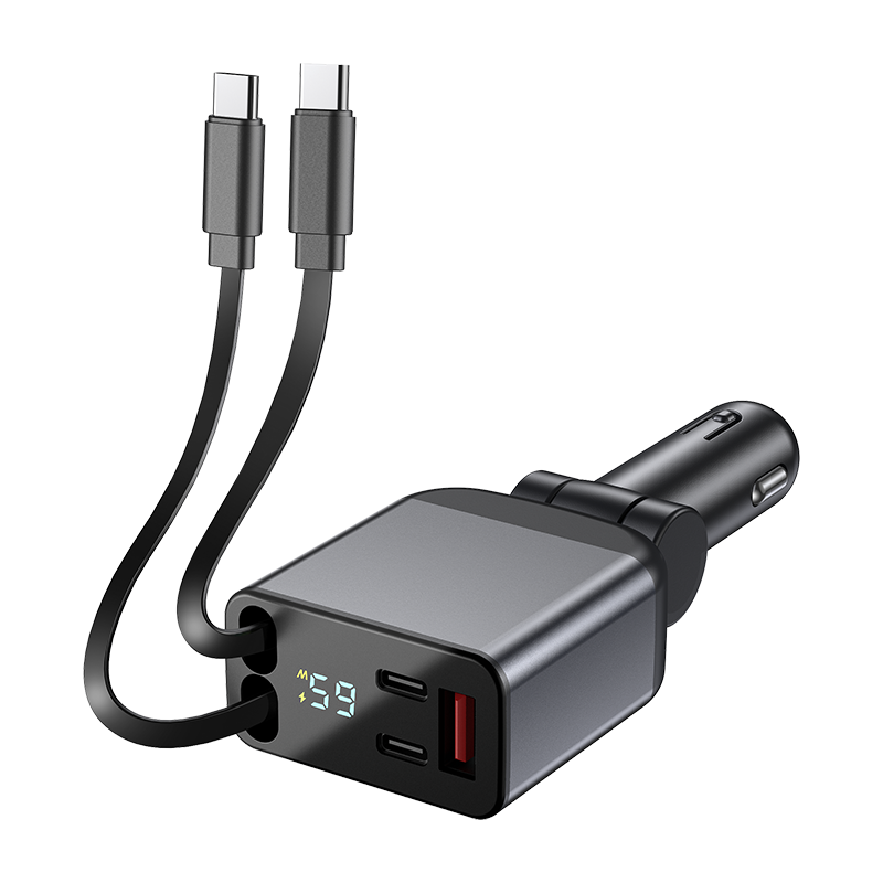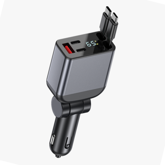 Cargador de coche retráctil 4 en 1, 5 en 1, portátil, de 60W, con múltiples puertos, super rápido, con carga rápida tipo C.