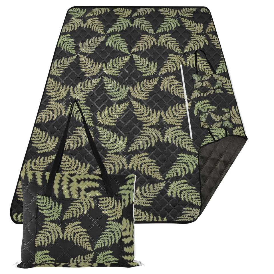 Manta de Picnic Extra Grande de Poliéster Acolchado de 60x80 Pulgadas, Personalizada con Diseño de Helecho Hawaiano, de 3 Capas, Impermeable, Portátil, para Acampar, con Bolso de Transporte