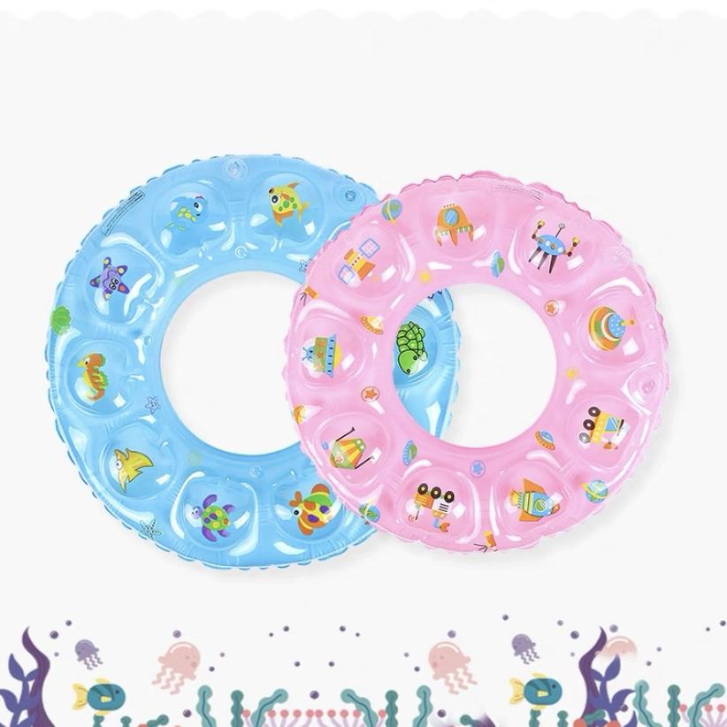 Flotador de Piscina Inflable Transparente de 60 cm con Diseño de Burbujas y Divertidos Estampados de Animales para Niños