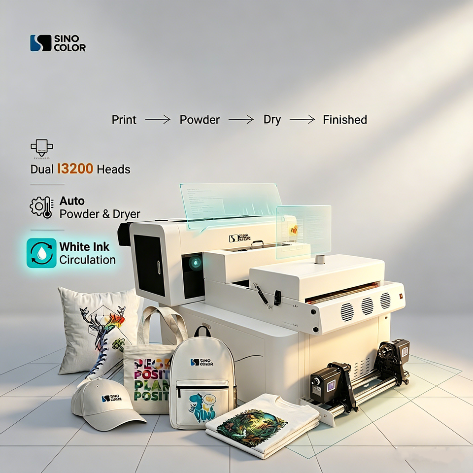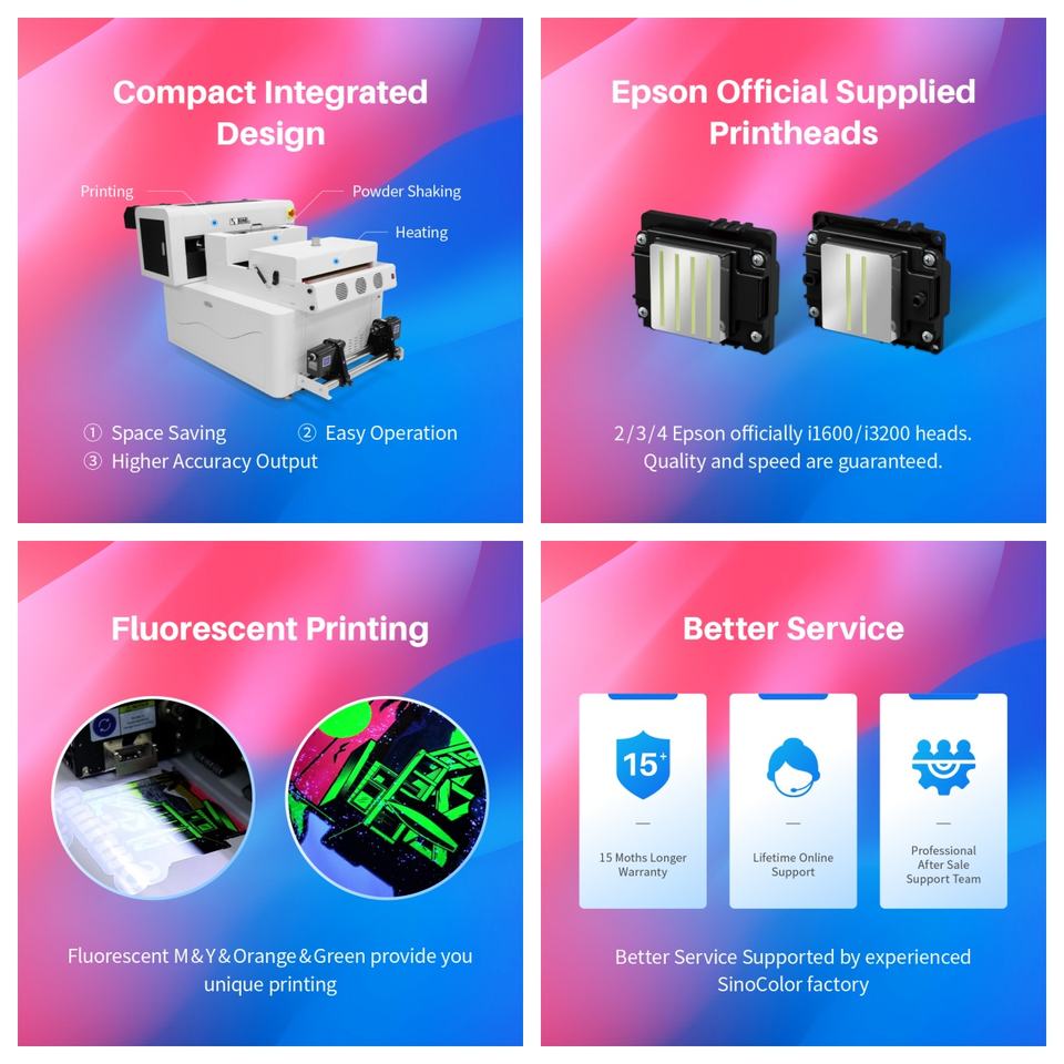 Impresora DTF de 60 cm con agitador de polvo, todo en uno, cabezales duales I3200, impresión continua 24 horas, 40/60/80 cm para camisetas, sudaderas con capucha y gorras