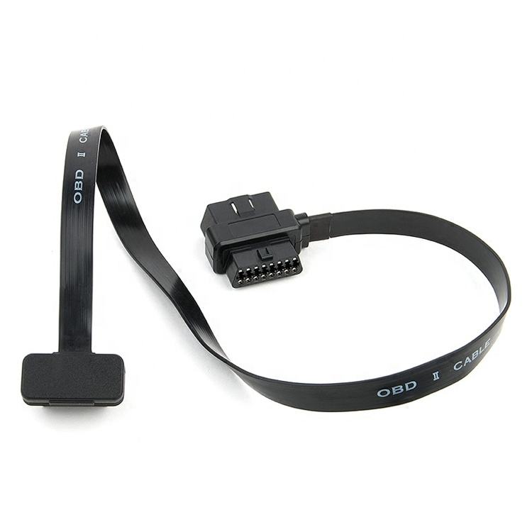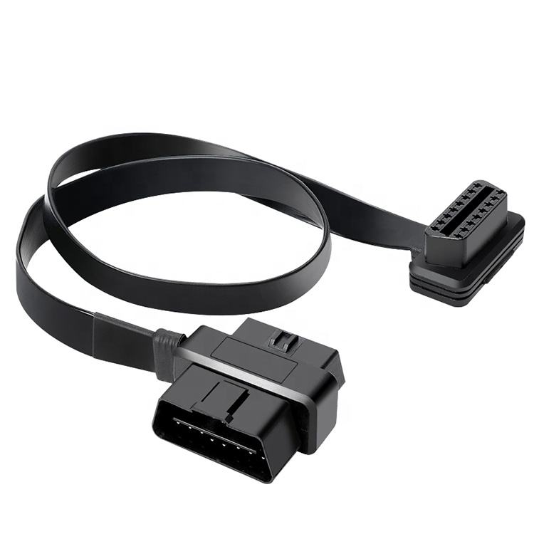 Cable de extensión divisor OBD II OBD2 de ángulo recto de 60cm, 1x2 x macho y hembra, adaptador de cable extensor delgado de perfil bajo