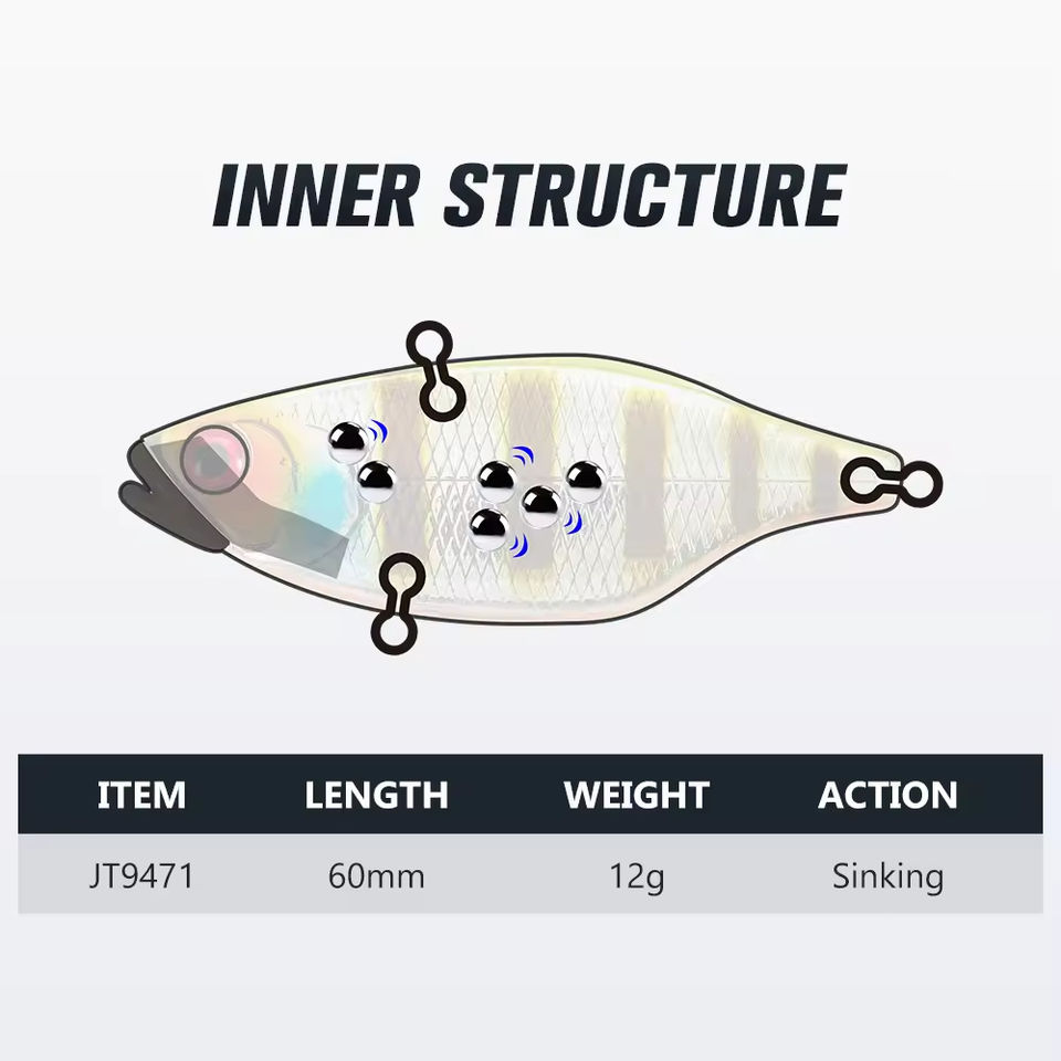Señuelo de Pesca Artificial de Plástico ABS de 60 mm y 12 g con Sonido de Cascabel, Hundimiento y Vibración Completa en el Agua