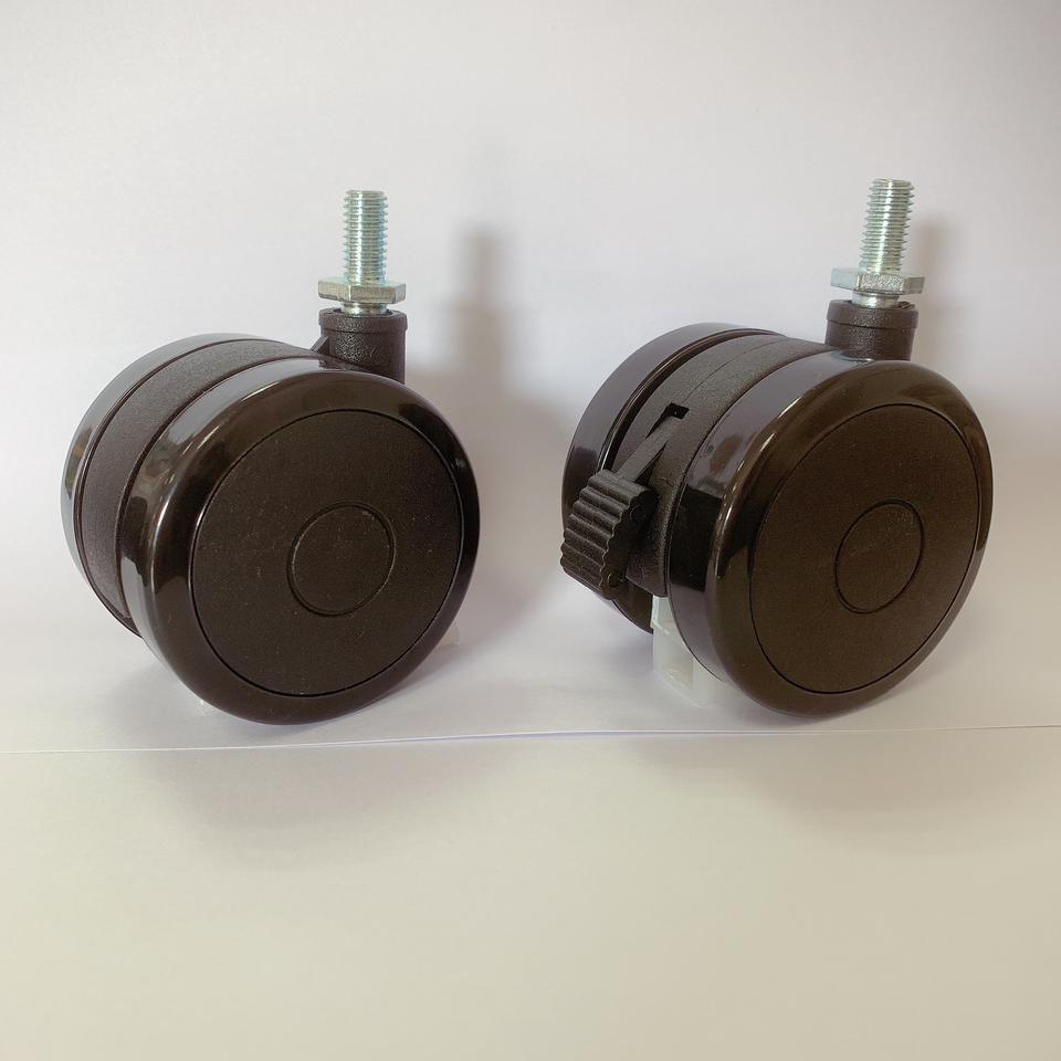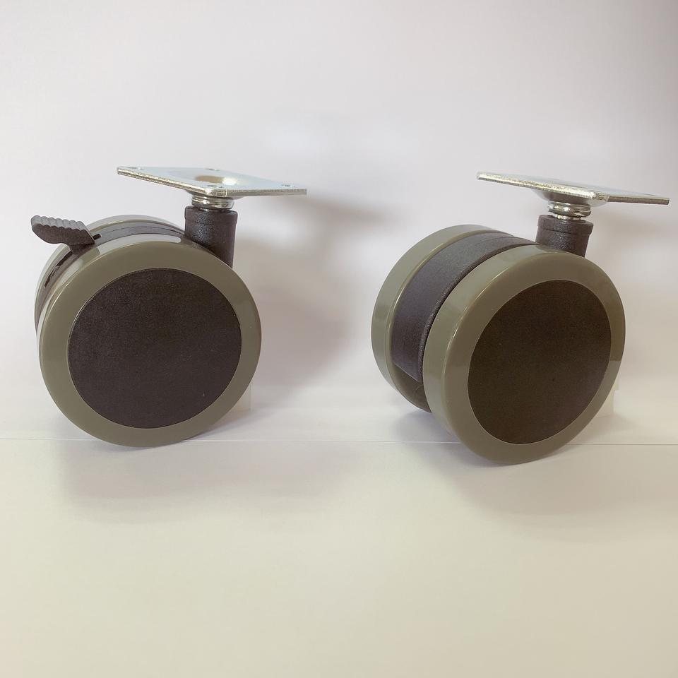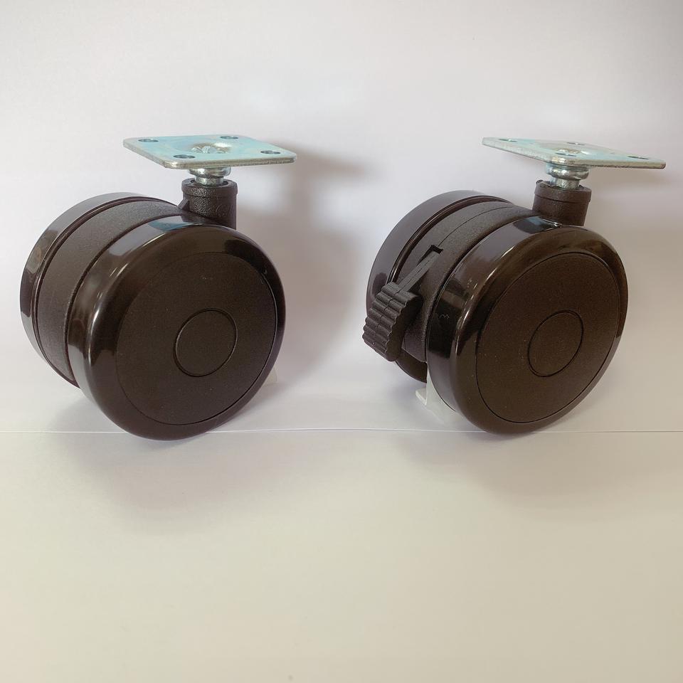 Rueda de PU de 60mm con cerradura para ruedas de cama, proveedor de muebles de 2,5 pulgadas de plástico Doble