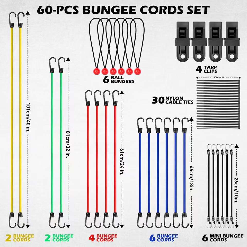 Juego de 60 Cuerdas Elásticas Multifuncionales para Exteriores y Hogar
