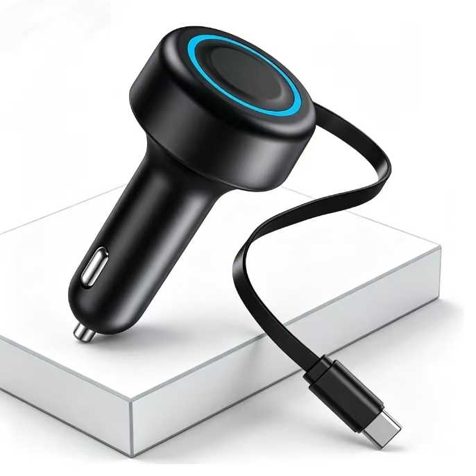 Cargador de coche rápido USB-C de 60w con pantalla LED digital, tipo C, portátil, multipuerto, retráctil, para teléfono.