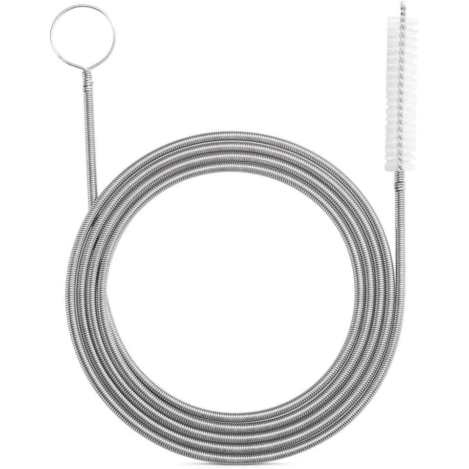 Limpiador de tuberías de nailon de acero inoxidable de 61 pulgadas, extra grueso con resorte más fuerte, cepillo flexible para desagües con orificios curvos delgados
