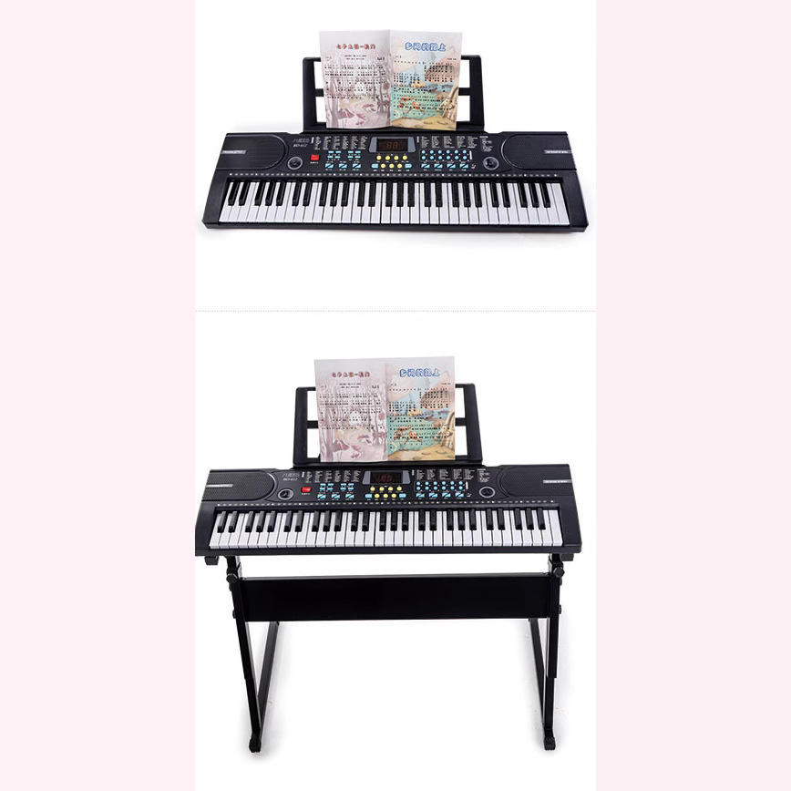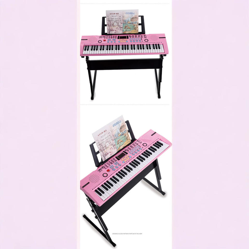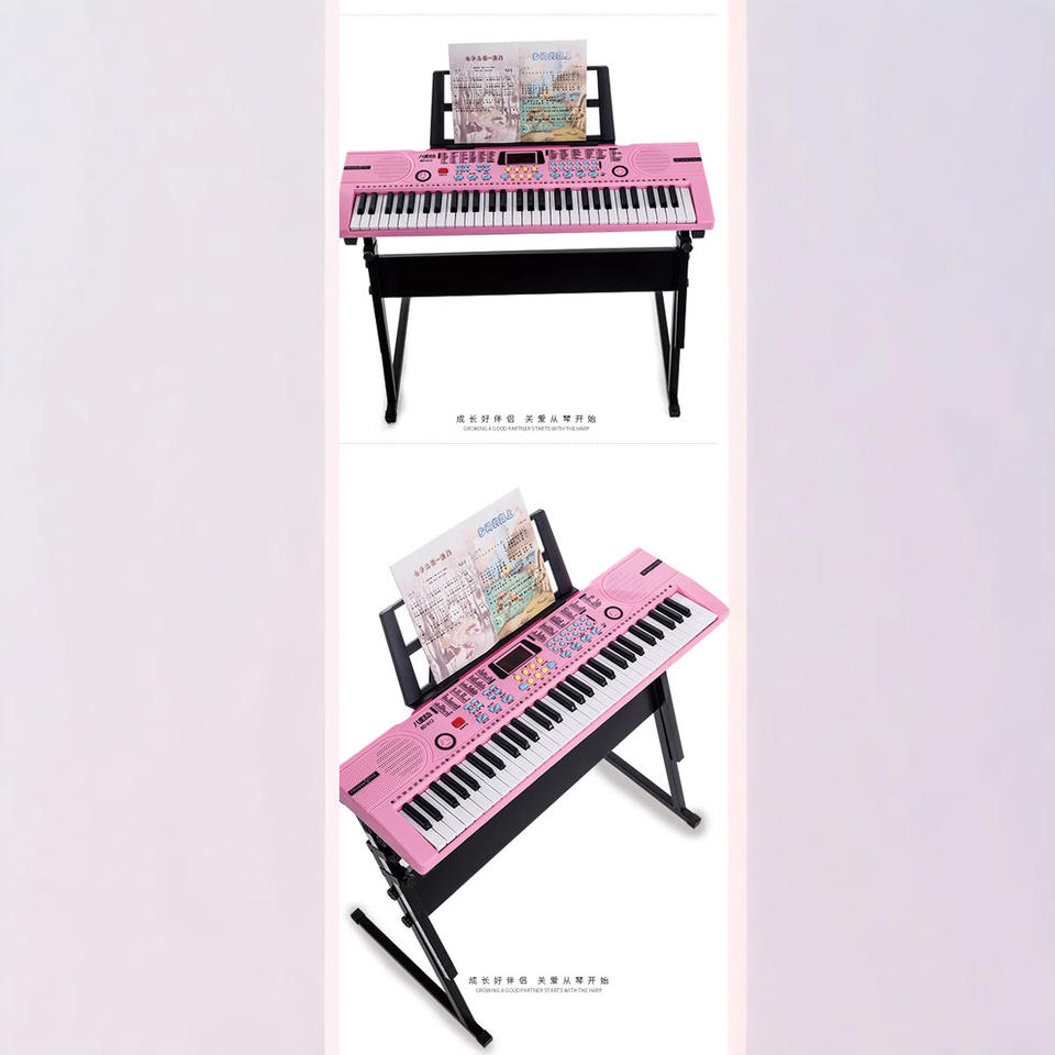 Teclado electrónico infantil de 61 teclas con micrófono y soporte para principiantes, juguete de piano para el aprendizaje musical para niños