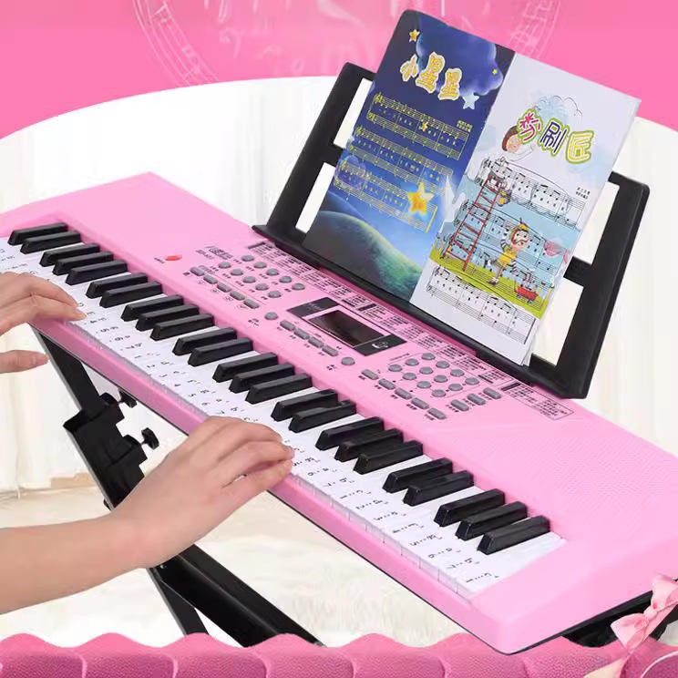 Teclado electrónico de 61 teclas para niños, juguete educativo, instrumento musical con soporte para música y libro de canciones, color rosa