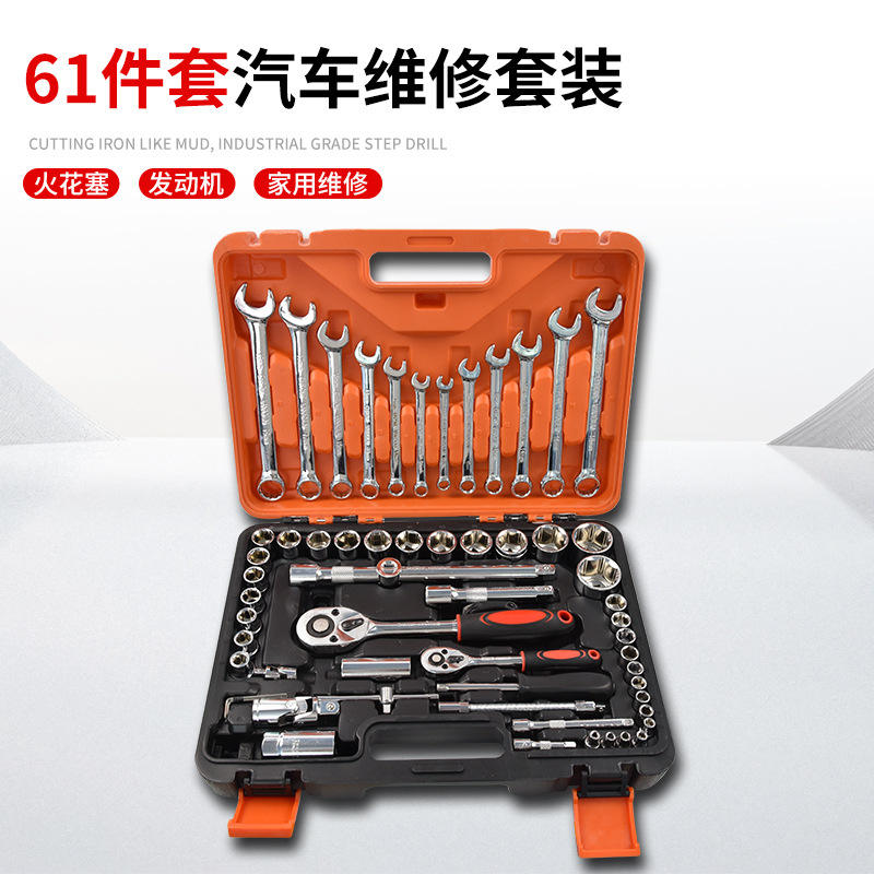 61 Piece Auto Repair Tool Set Socket Ratchet Wrench 1/2 In Chrome Vanadium Steel Hard Case Car Maintenance Kit