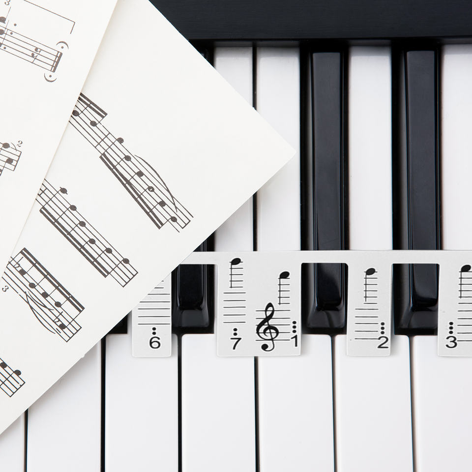 Tabla de notas de piano de 61 teclas, pegatinas removibles antiadherentes para teclado de piano con tablilla musical y notación musical numerada para niños principiantes