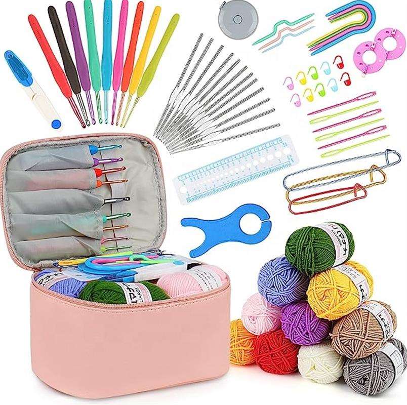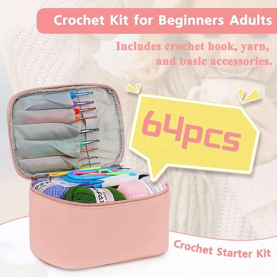 Kit de 62 Piezas de Herramientas de Crochet para Principiantes con Hilo, Estuche de Viaje Portátil con Ganchos