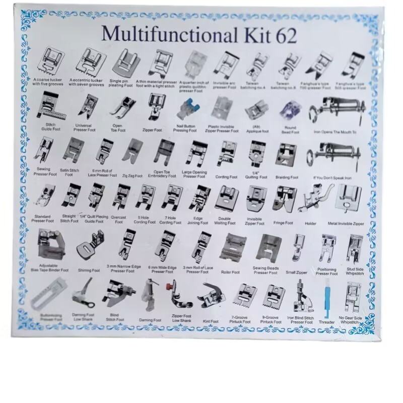 Juego de 62 Piezas de Prensatelas para Máquina de Coser Brother y Singer: Kit de Accesorios para Trenzado, Puntada Invisible, Overlock, Cremallera, Rodillo y Regla