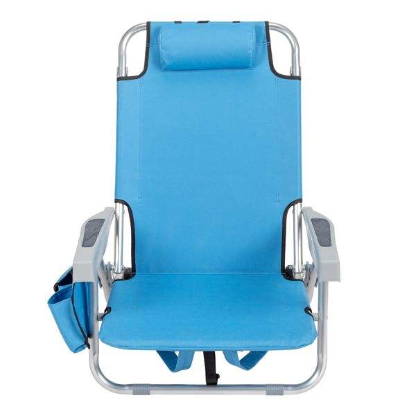 Silla de playa azul de tela Oxford corta de 63*65*82cm con rodamiento de tubo de aluminio de 100kg blanco plateado dirigido a alta capacidad de carga