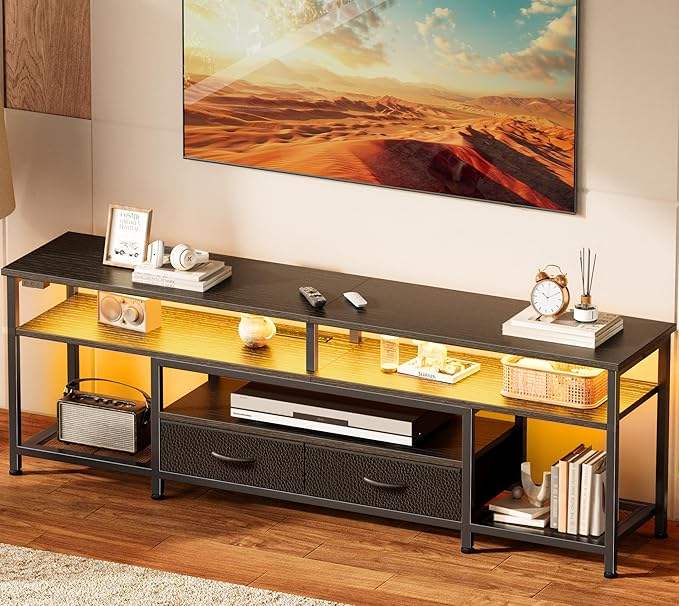 Soporte para TV LED de 63 Pulgadas para Televisores de 65 y 70 Pulgadas, Centro de Entretenimiento con Estantes Abiertos, Consola para TV para Sala de Estar, Negro