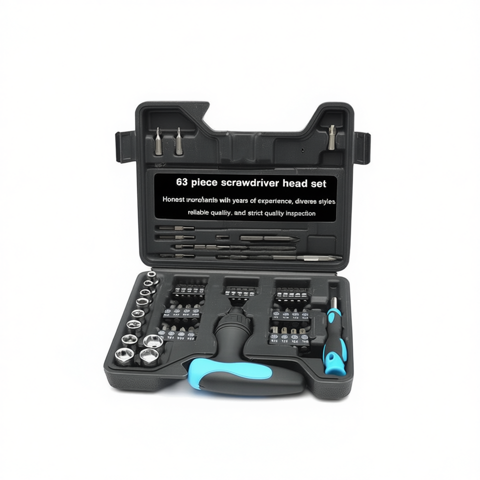 Juego de Destornilladores Multifuncionales de 63 Piezas con Mango Antideslizante, Mango de Acero con Acabado de Zinc de Grado Industrial
