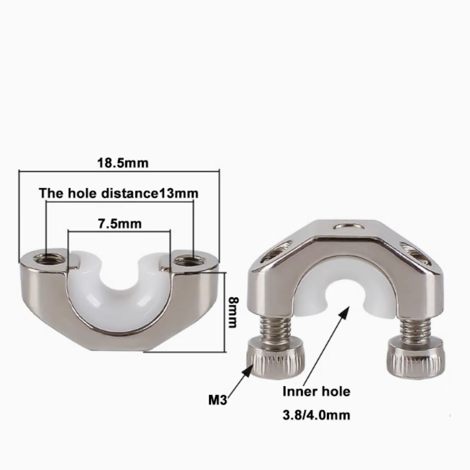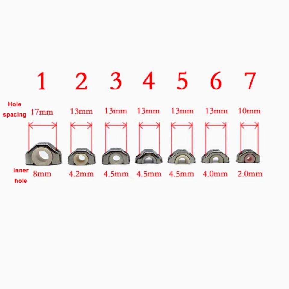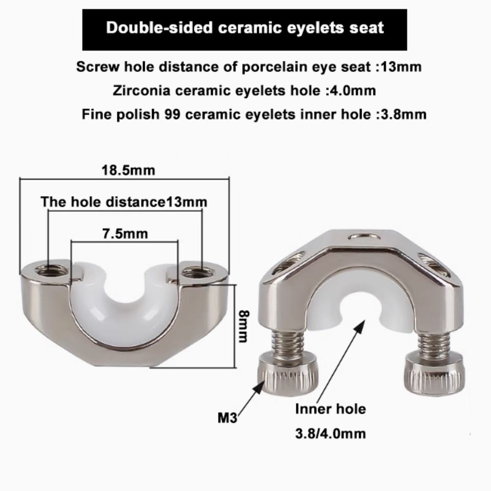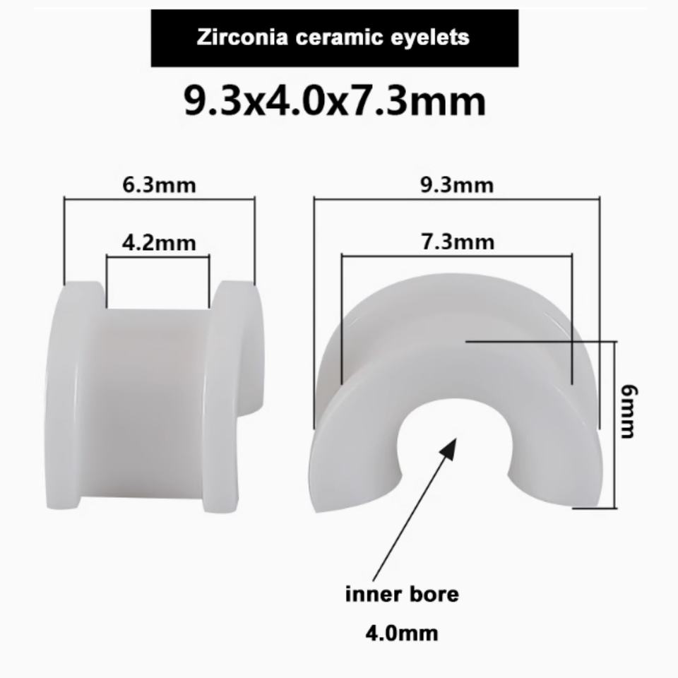 Guía de hilo para máquina de trenzado 630, ojal de cerámica de circonia con orificio interior de 4 mm, asiento metálico con distancia entre orificios de 13 mm, pulido a espejo Ra 0.1