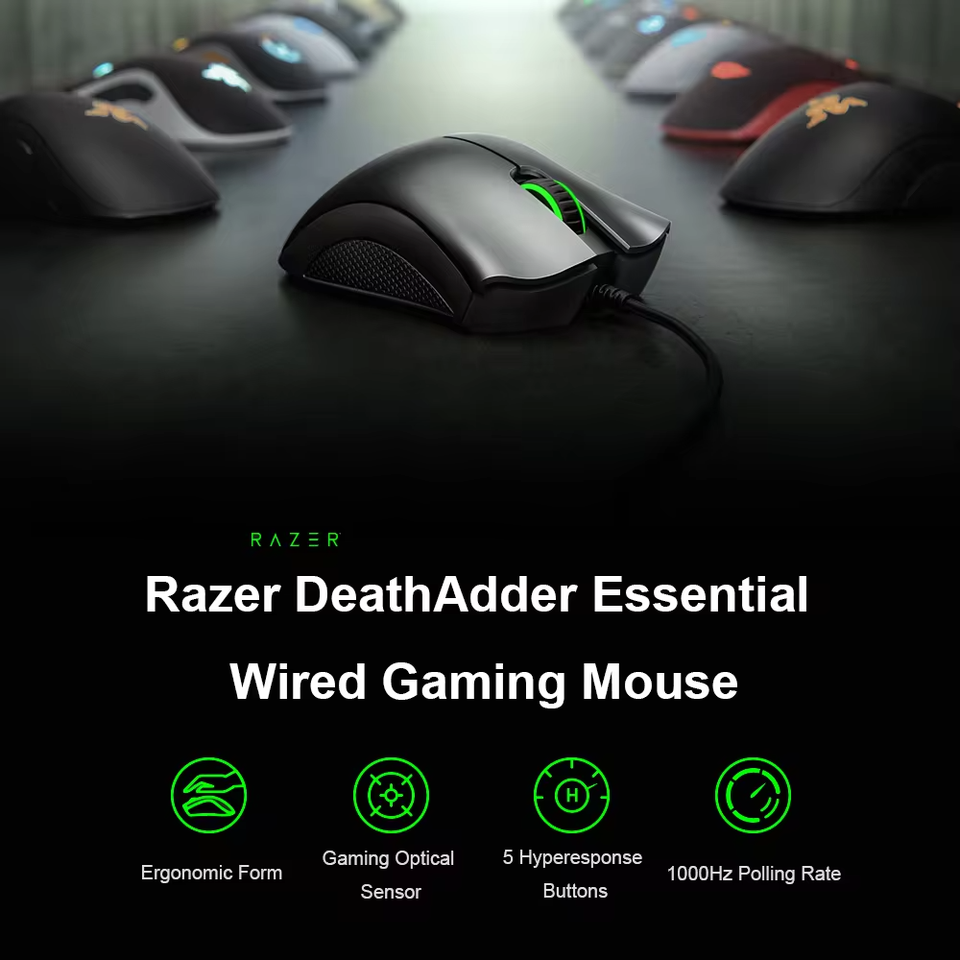 Ratón para Juegos con Sensor Óptico de 6400 DPI, 5 Botones Independientes, Ratón Razer Deathadder V2 Essential para PC y Portátil, Ratón para Juegos con Cable