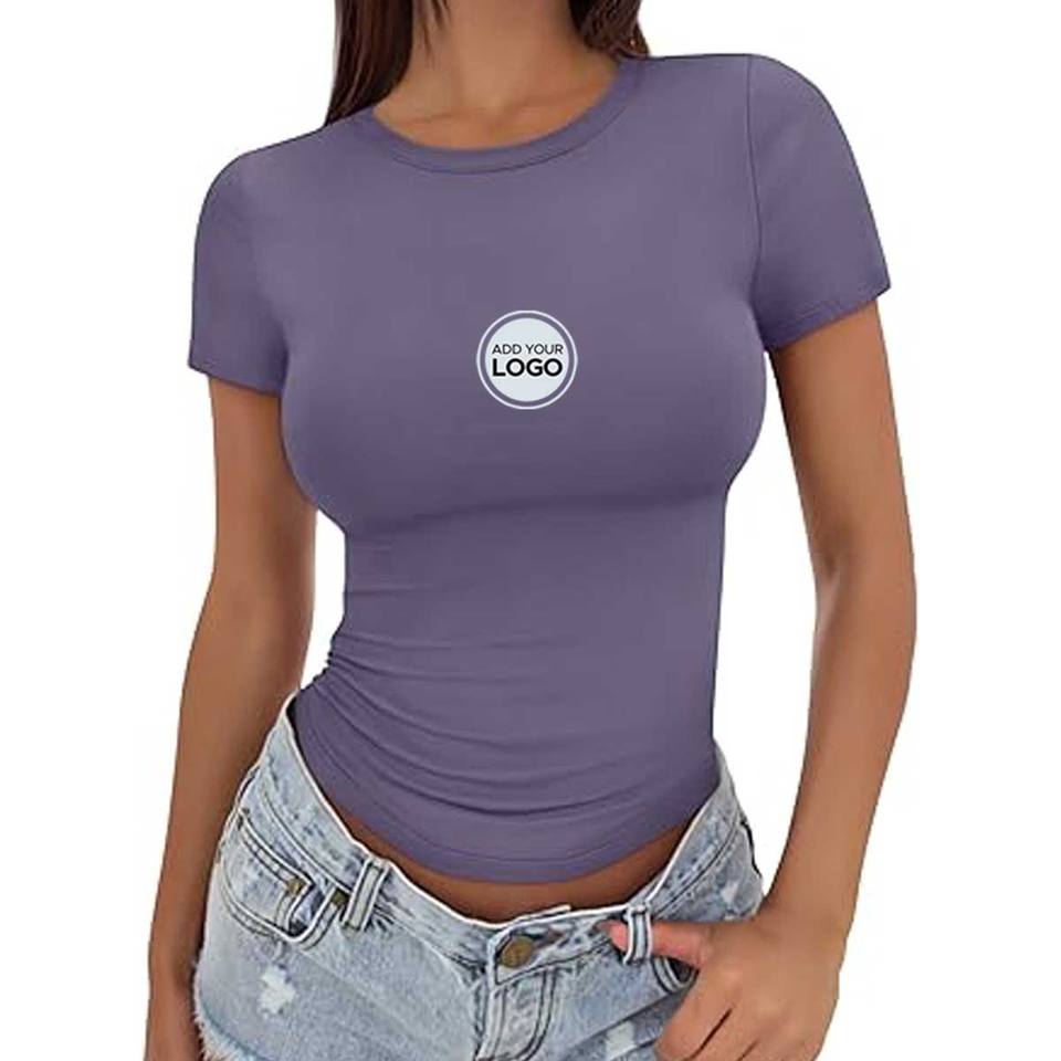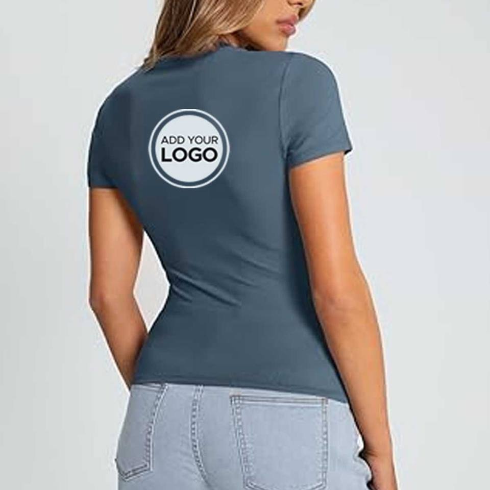 Camiseta Corta Informal Transpirable para Mujer, 65/35 Poliéster/Algodón Peinado, 40 Hilos, con Logotipo, Jersey Fino