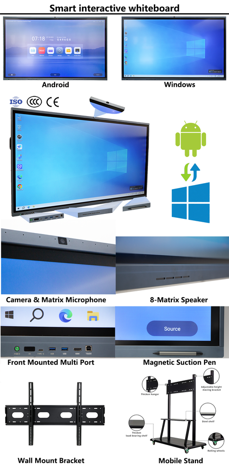 65 75 85 86 pulgadas LED interactivo digital inteligente LCD tablero negro pantalla táctil electrónica nano pizarra inteligente para el aula