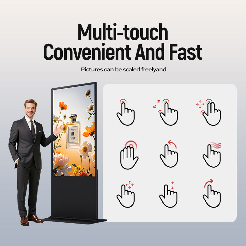 Pantalla digital publicitaria LCD de pie con pantalla grande de 65, 75 y 85 pulgadas para vestíbulo de aeropuerto