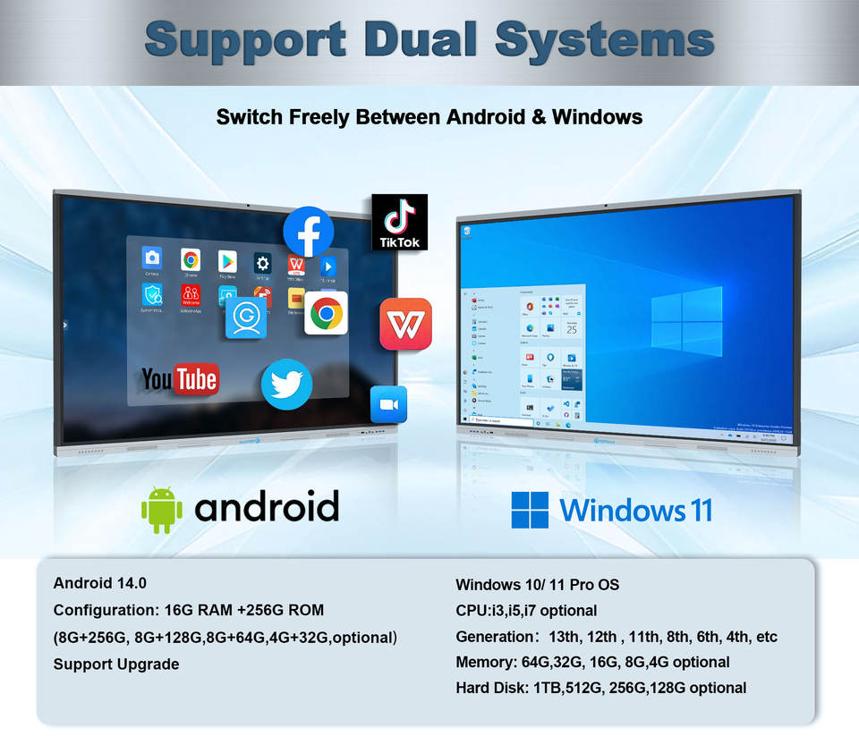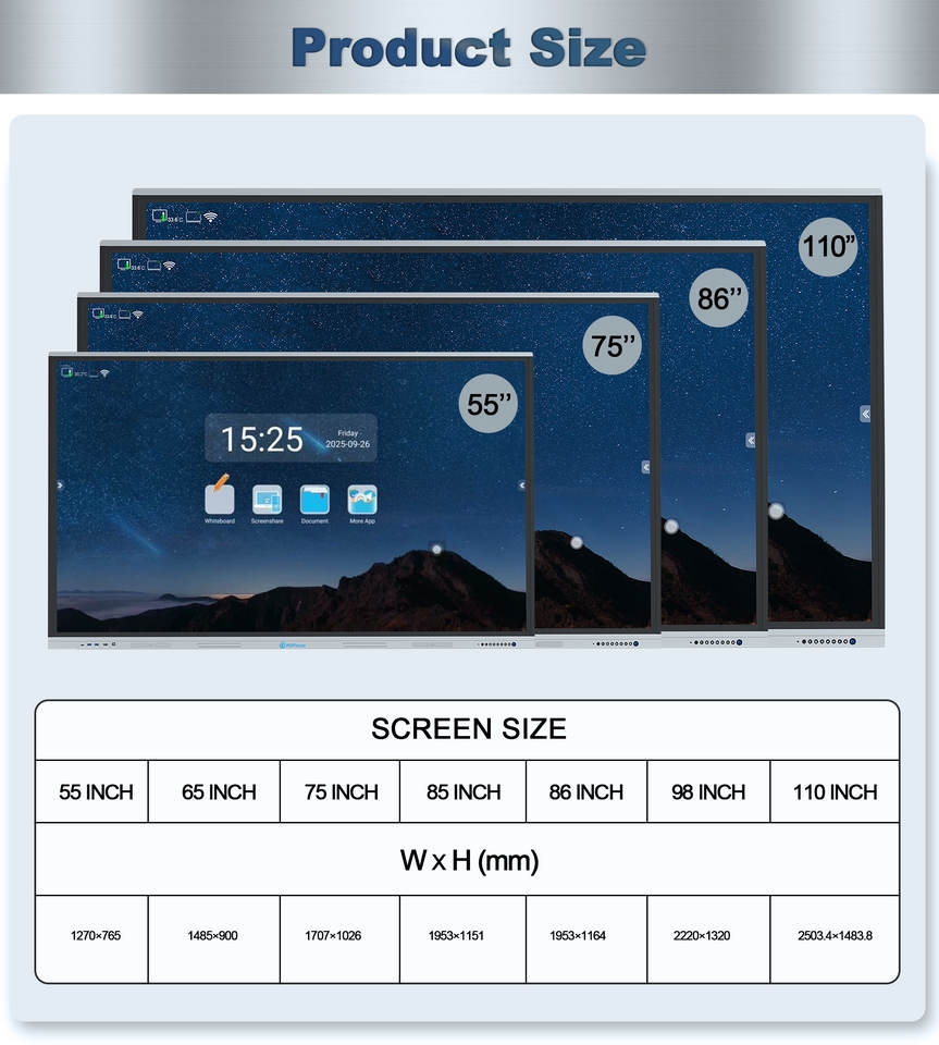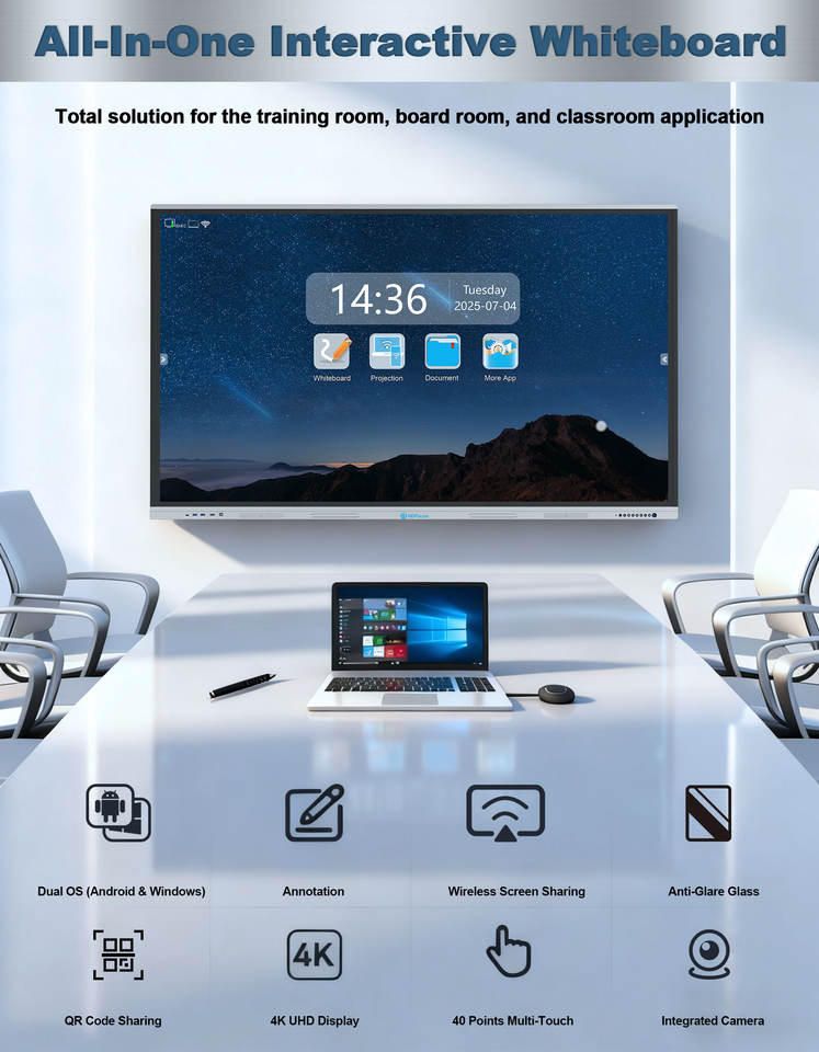 Pizarra Interactiva Inteligente con Pantalla Táctil 4K de 65 y 75 Pulgadas para la Enseñanza Escolar con Función de Escritura Multusuario y Pizarras Interactivas